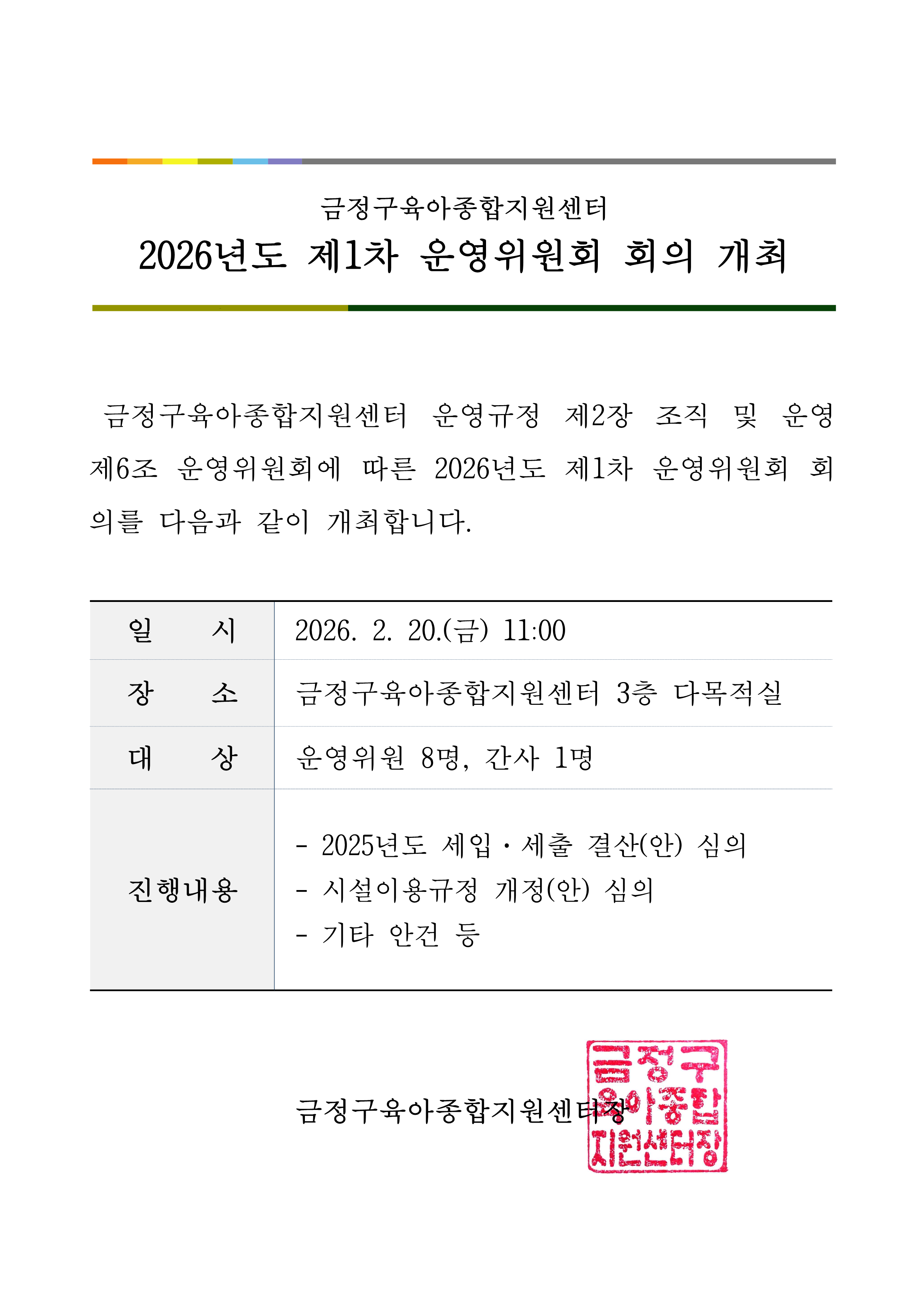 [운영위원회] 2026년도 제1차 운영위원회 회의 개최 알림