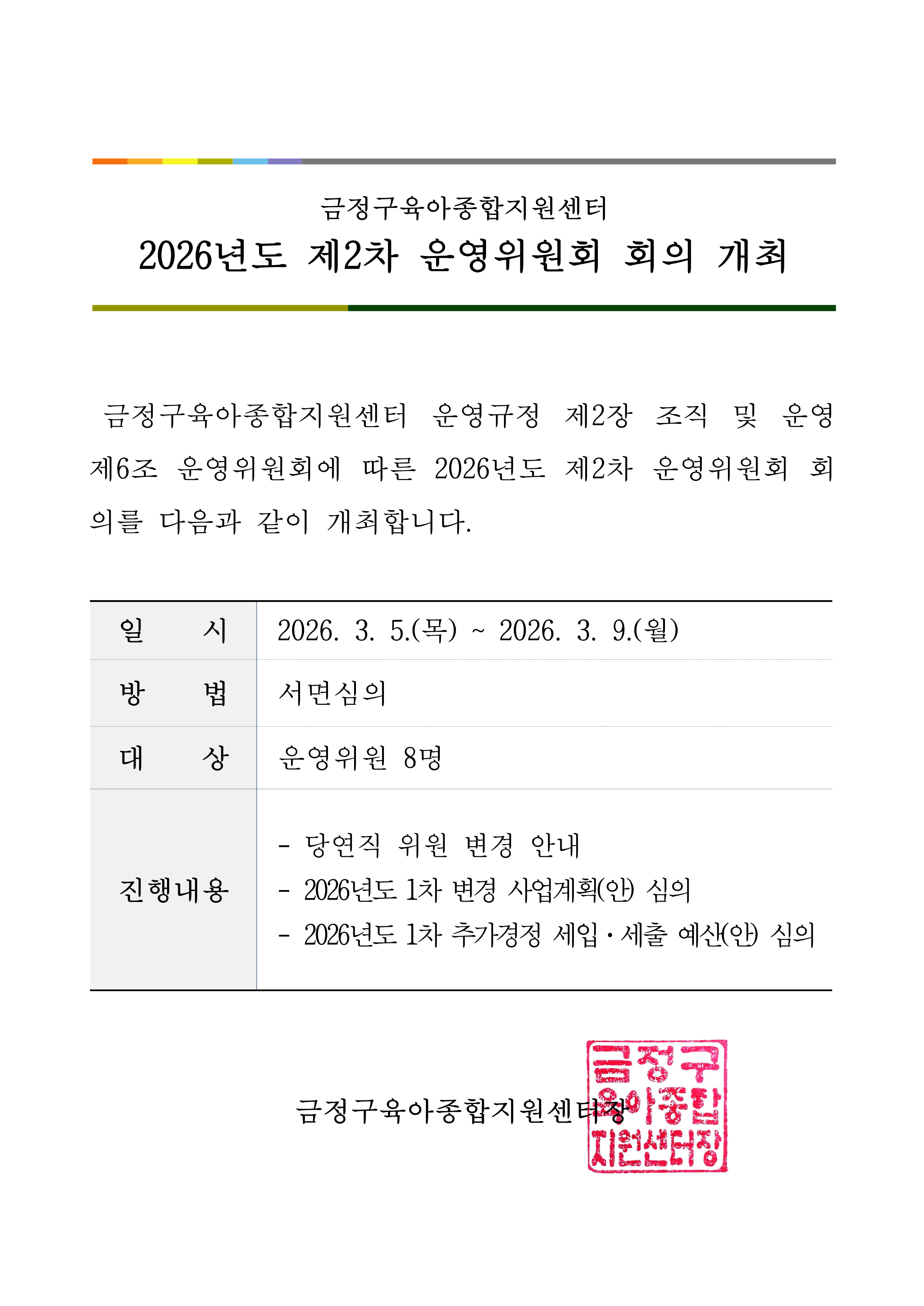 [운영위원회] 2026년도 제2차 운영위원회 회의 개최 알림