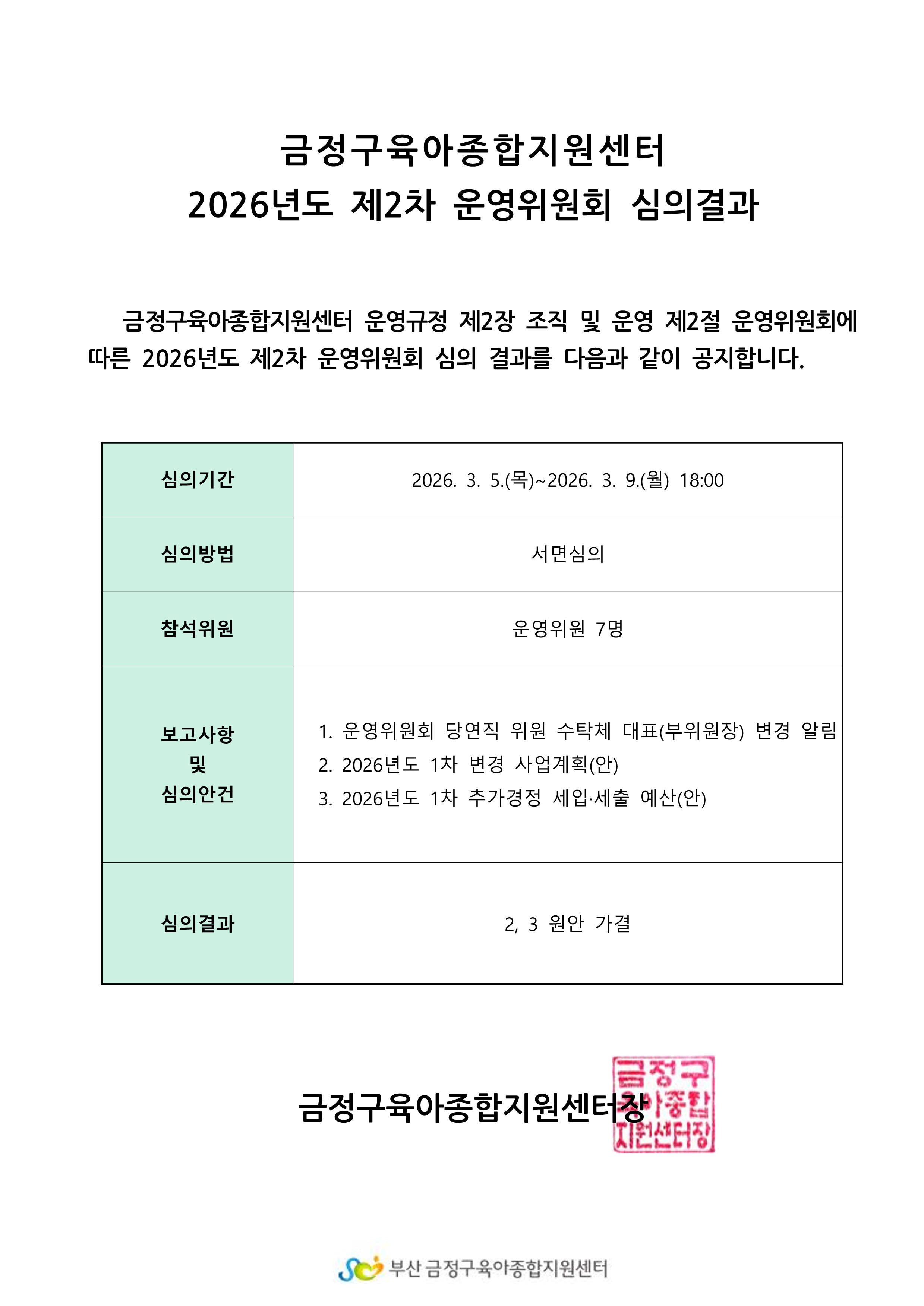 [운영위원회] 2026년도 제2차 운영위원회 심의결과 공지