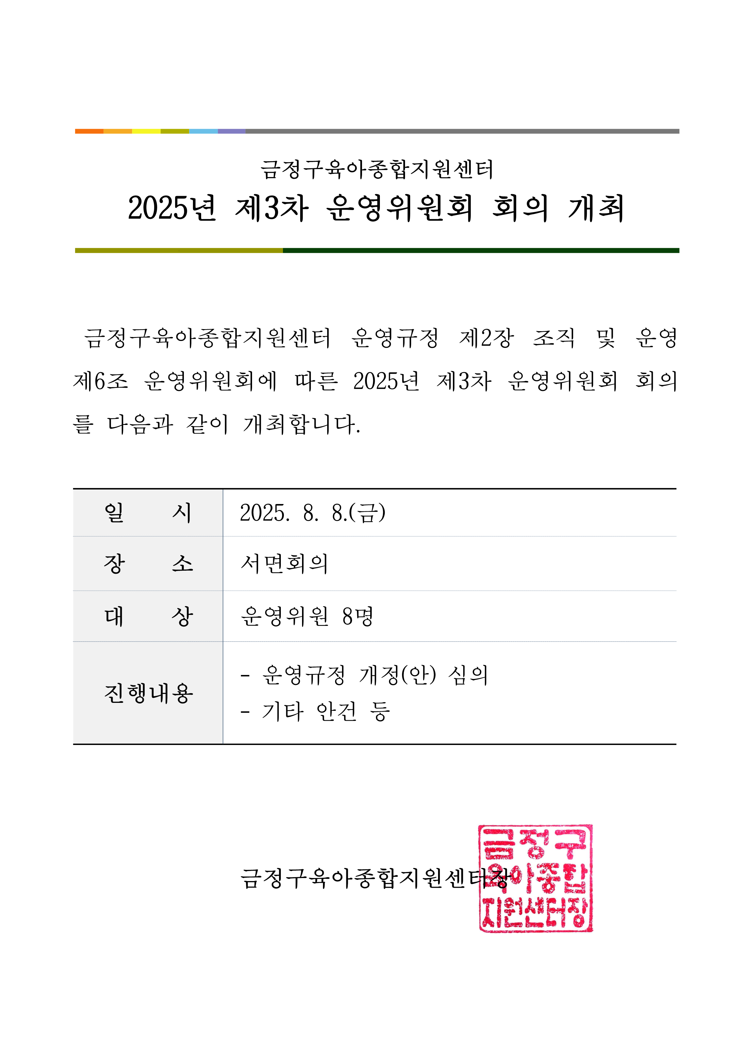[운영위원회] 2025년 제3차 운영위원회 회의 개최 알림