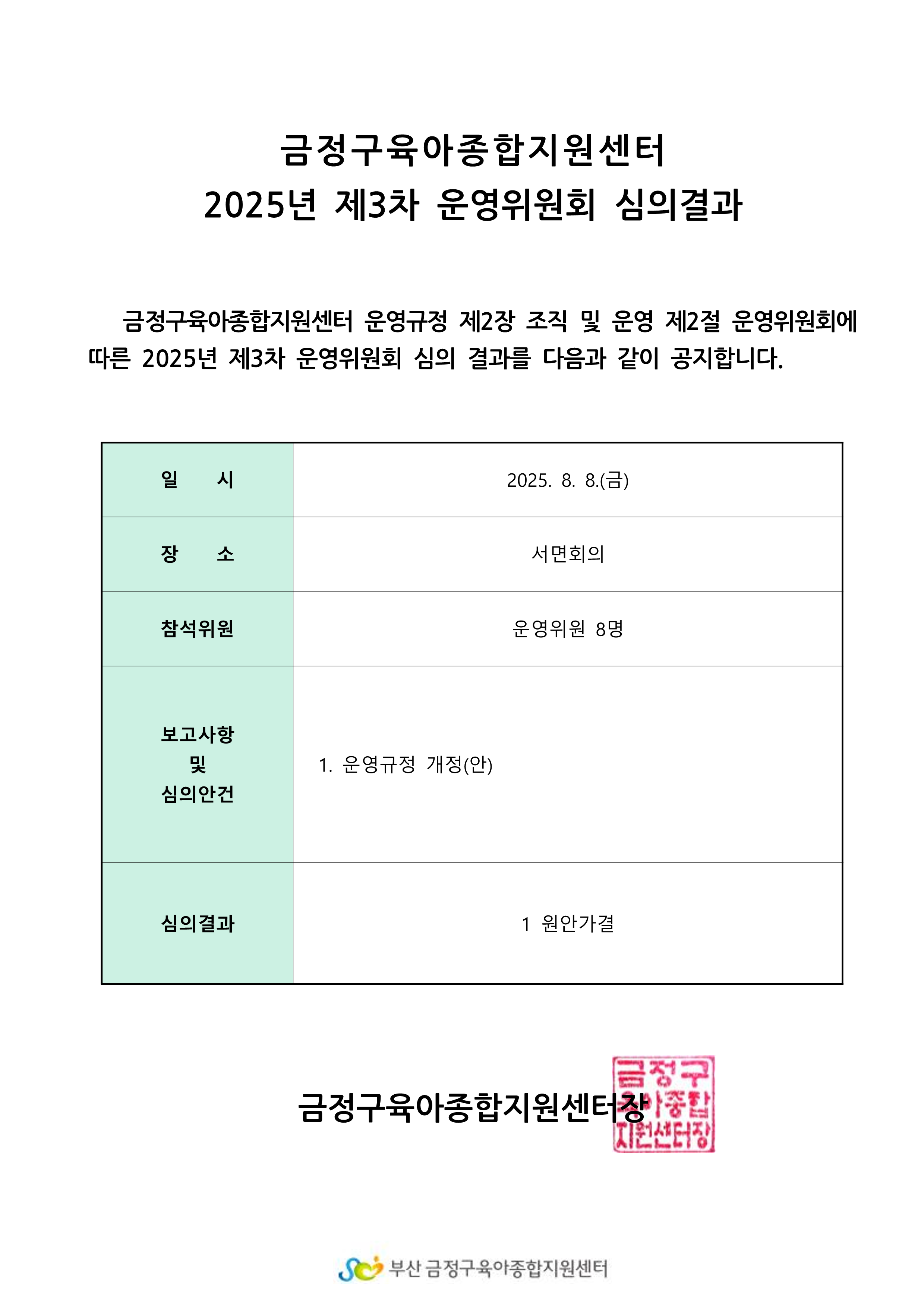 [운영위원회] 2025년 제3차 운영위원회 심의결과 공지
