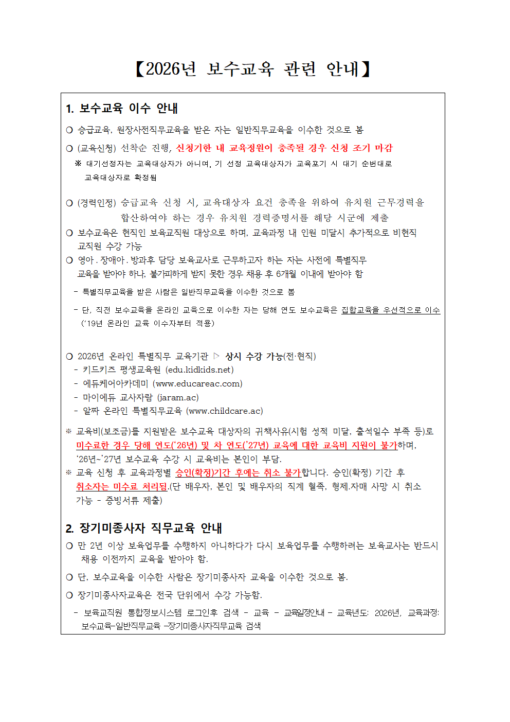[교육자료] 2026년 보육교직원 보수교육 관련 안내