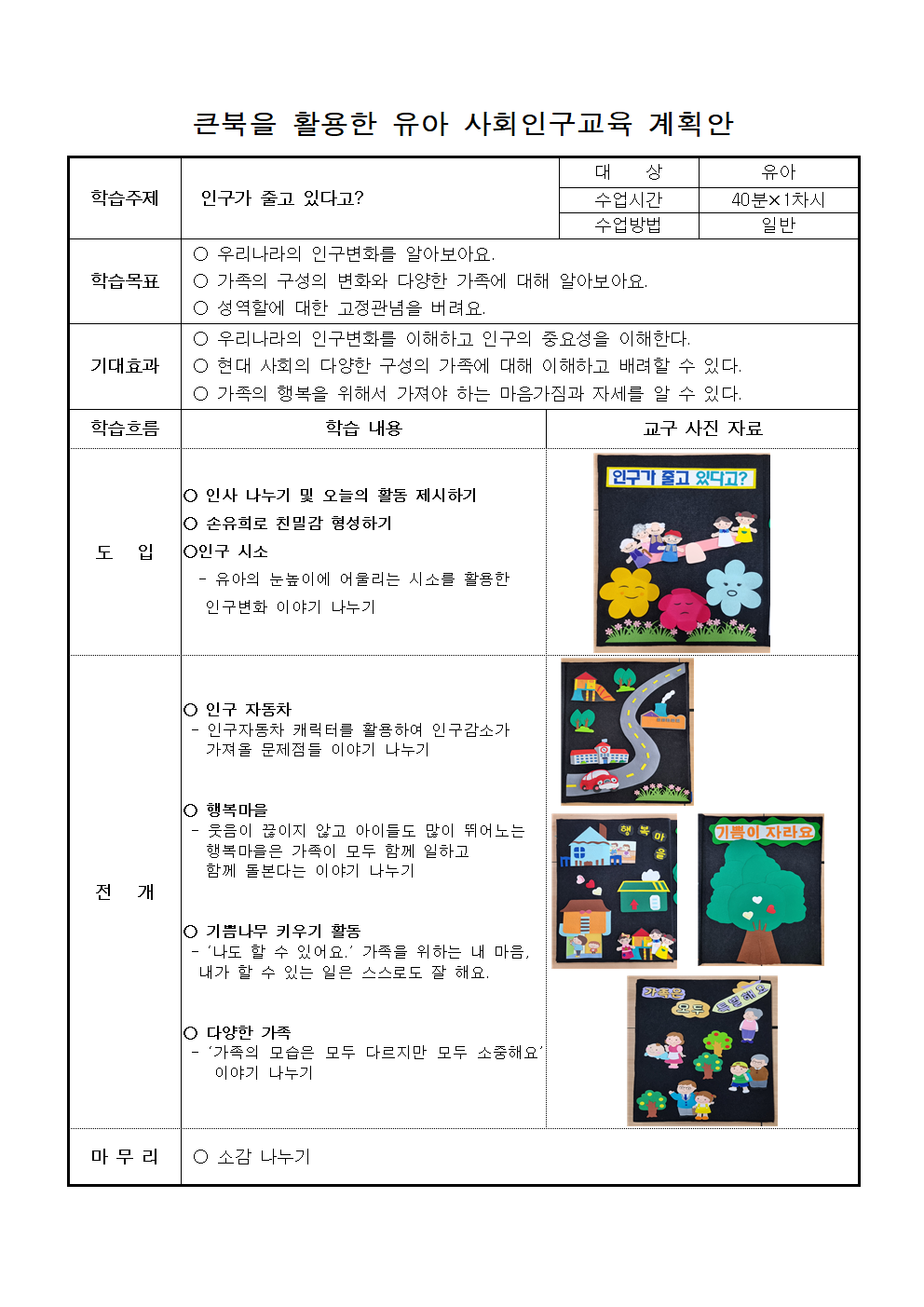 다양한 주제로 인구변화에 대응하는 가치관 형성을 지원하기 위하여