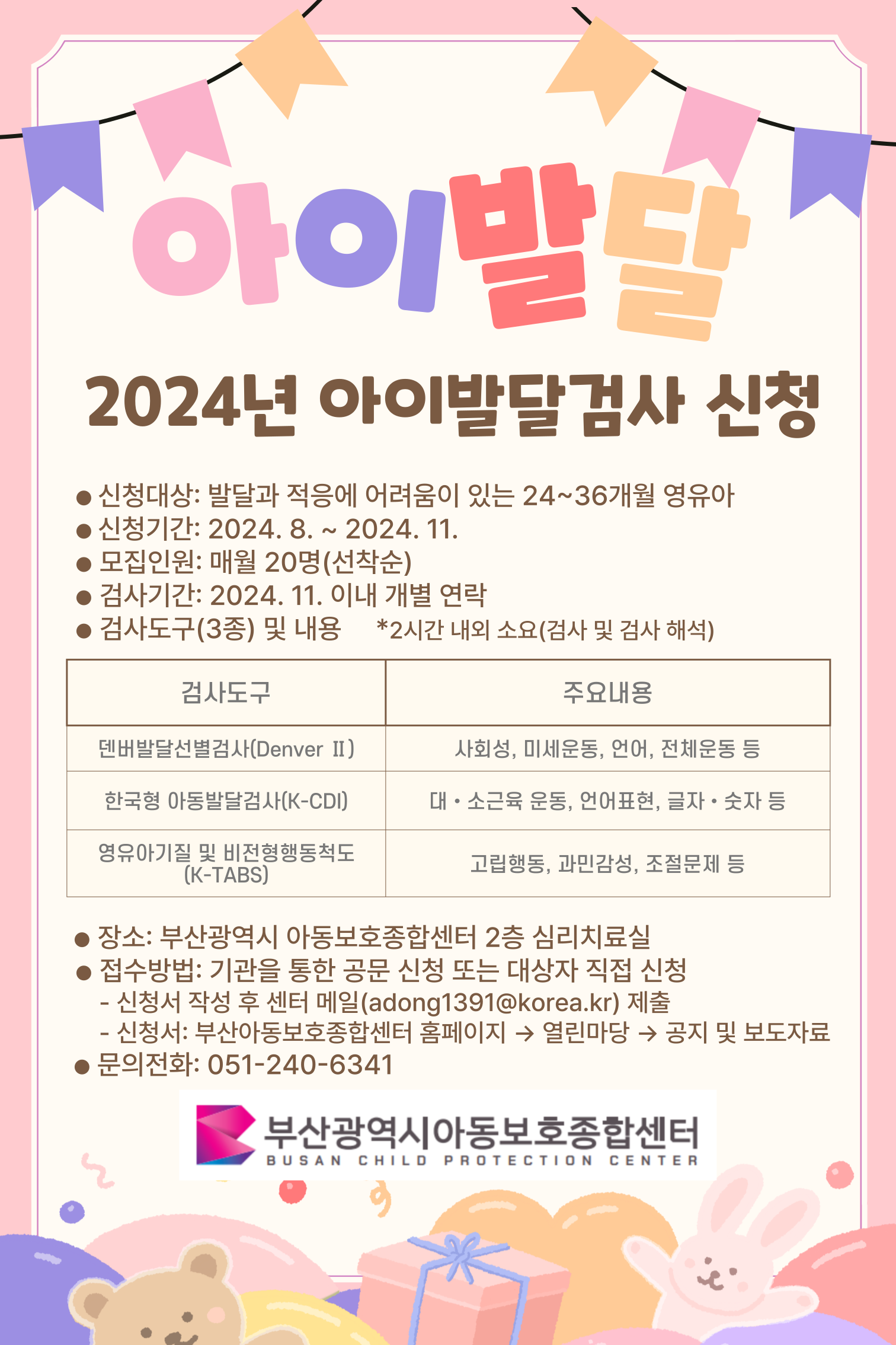 [문서자료] [부산광역시아동보호종합센터] 2024년 아이발달검사지원사업 홍보 및 신청