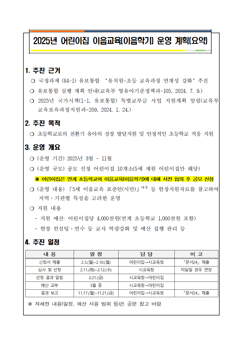 [문서자료] 2025년 어린이집 이음교육(이음학기) 운영 계획 및 공모 알림