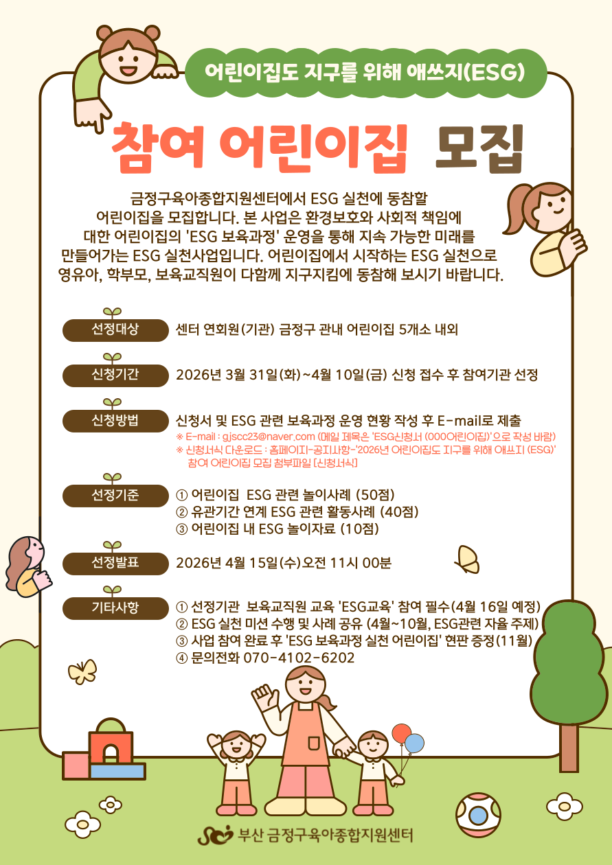 2026년 '어린이집도 지구를 위해 애쓰지(ESG)' 참여 어린이집 모집
