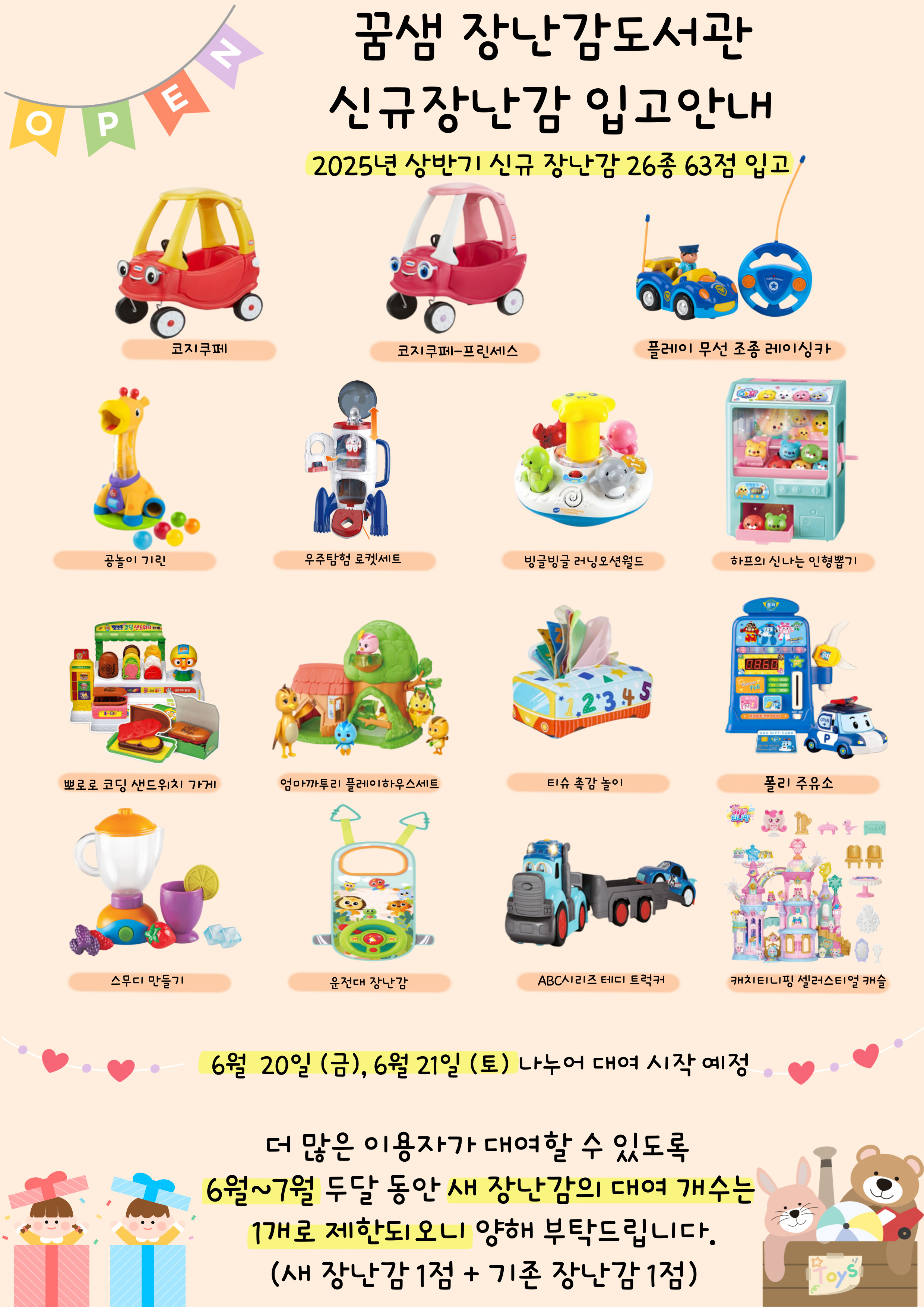 2025년 꿈샘장난감도서관 신규장난감 입고안내