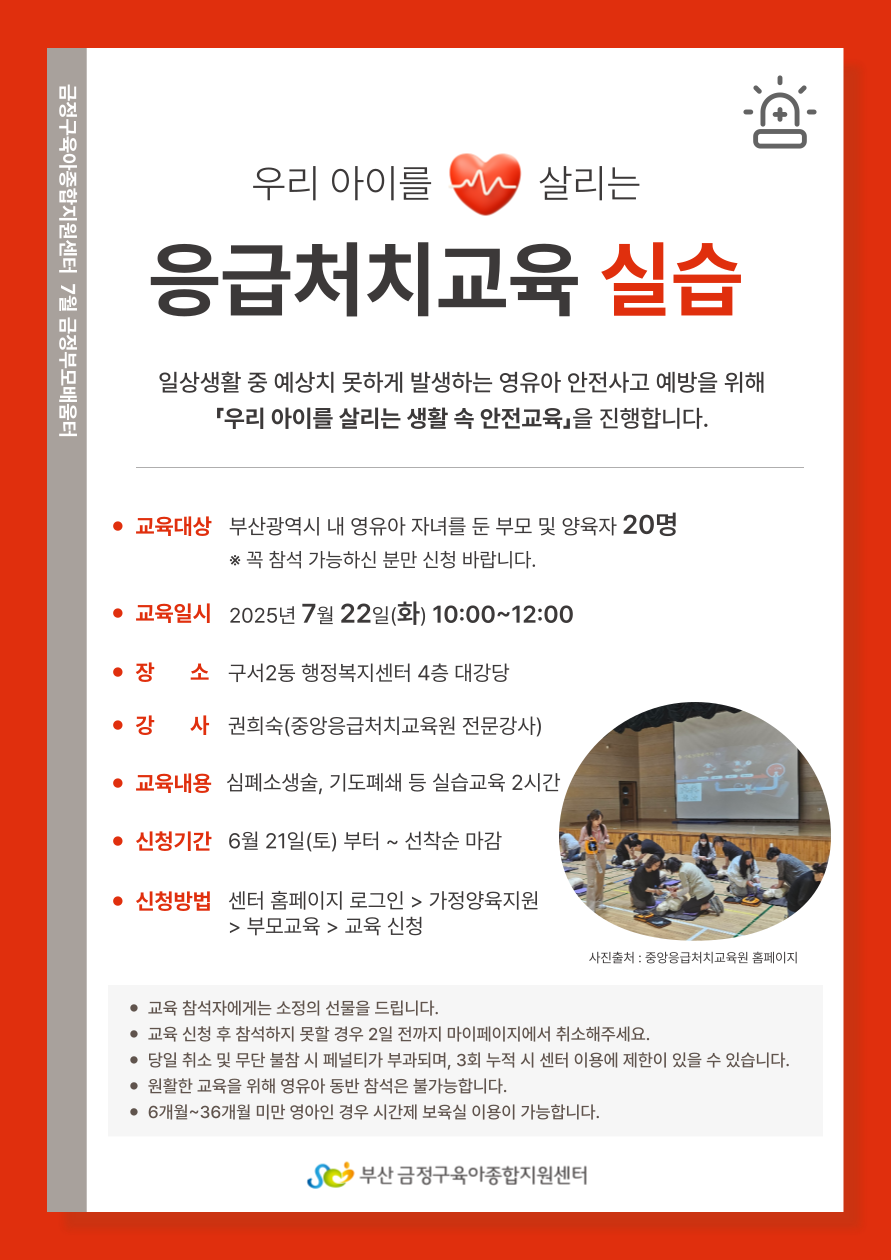 2025년 7월 금정부모배움터 「우리 아이를 살리는 생활 속 안전교육」 신청 안내