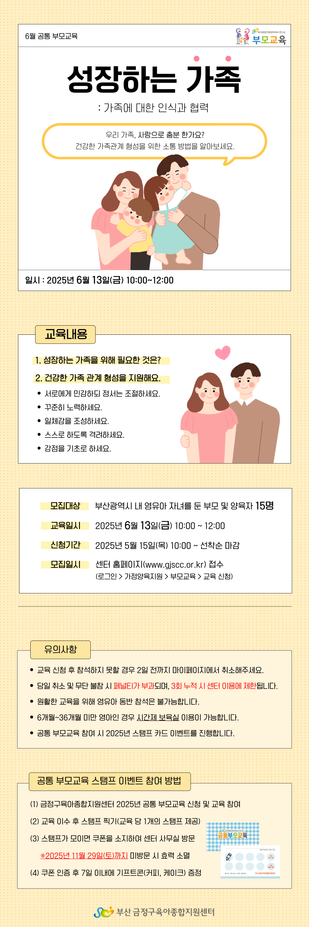 2025년 6월 공통 부모교육 「성장하는 가족」 신청 안내