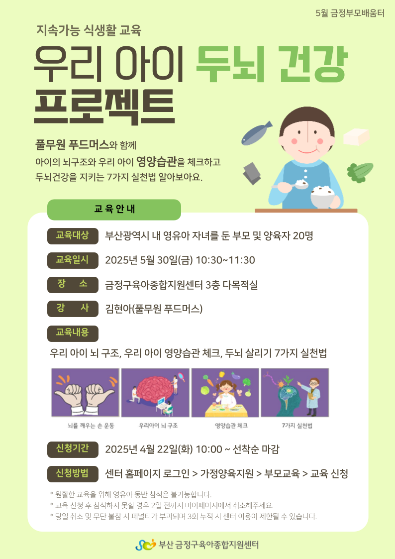 2025년 5월 금정부모배움터 「우리 아이 두뇌 건강 프로젝트」 교육 안내