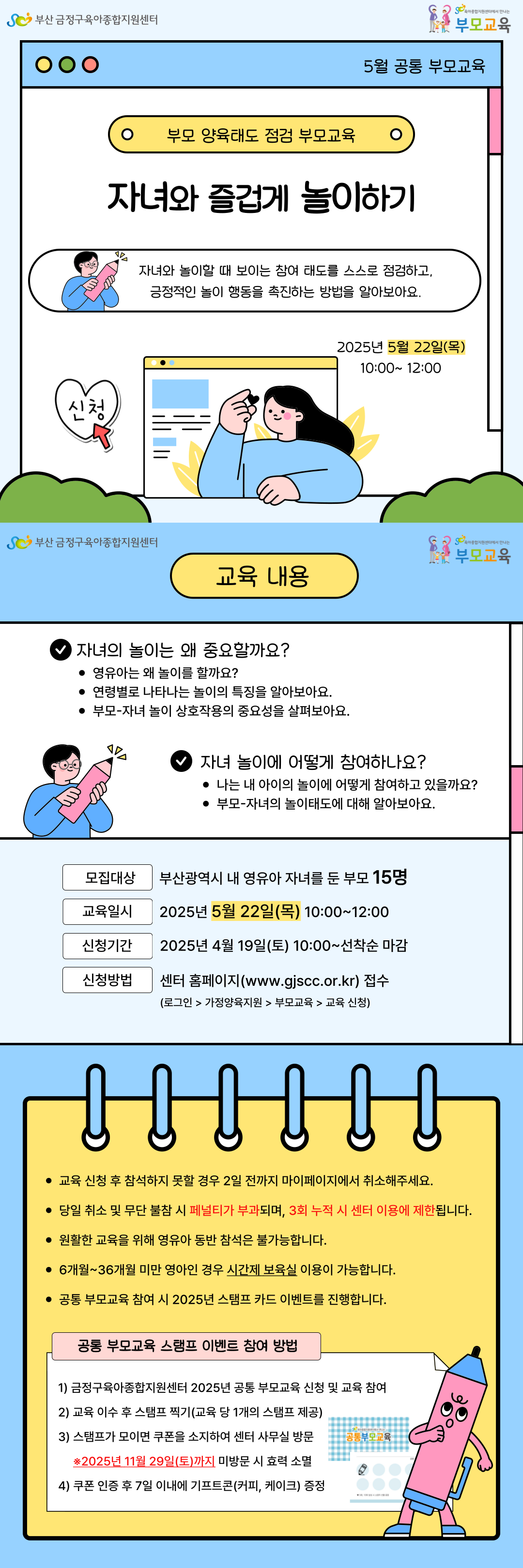 2025년 5월 공통 부모교육 「엄마랑 아빠랑 함께 놀아요」 체험활동 안내