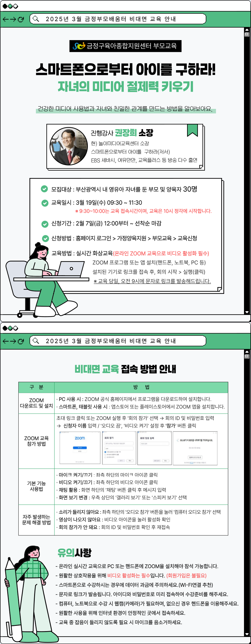 - 교육 당일 오전 9시 문자로 zoom 링크를 보내드립니다.