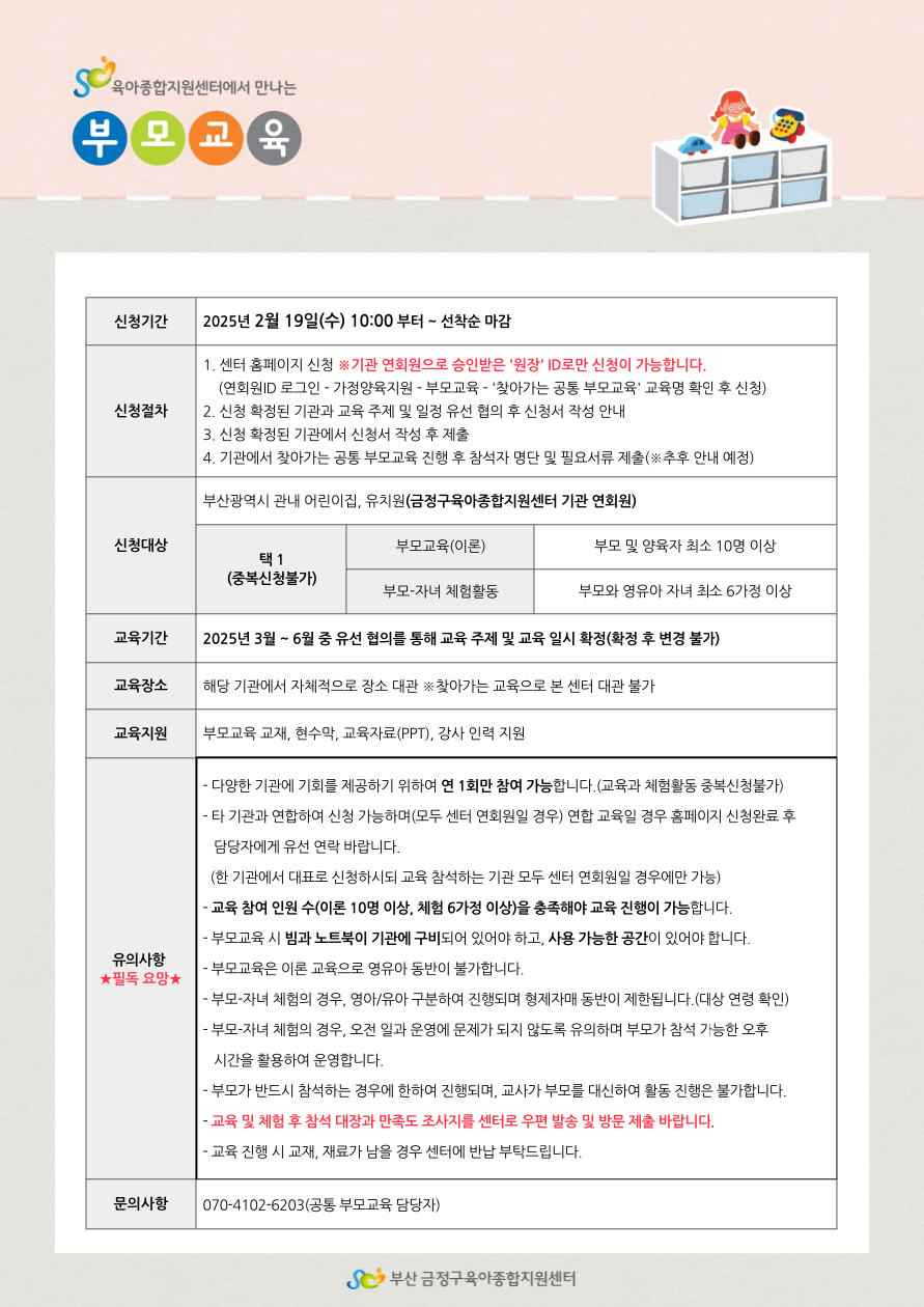 • 신청방법 : 금정구육아종합지원센터 홈페이지 신청