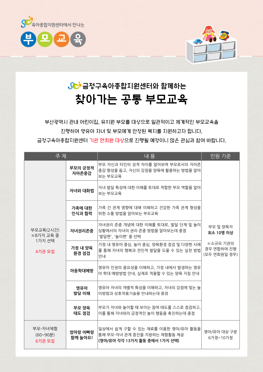 금정구육아종합지원센터와 함께하는 「찾아가는 공통 부모교육」