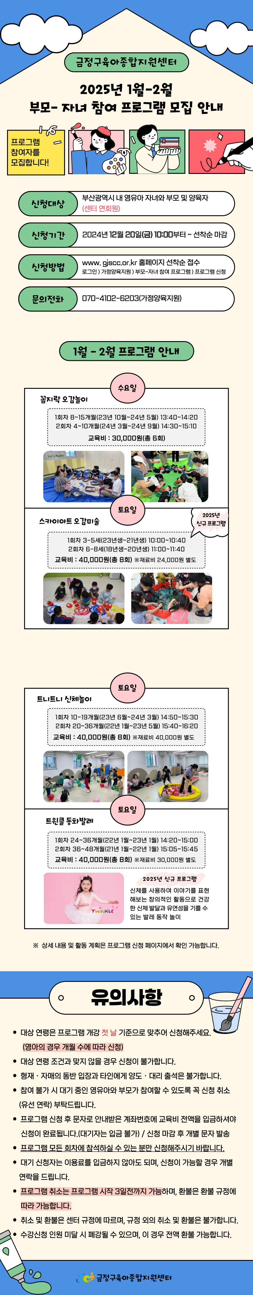 금정구육아종합지원센터 2025년 1월-2월 부모 자녀 참여 프로그램 참여자를 모집합니다.