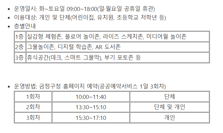 <금정아이숲 들락날락 어린이복합문화공간 이용 안내>