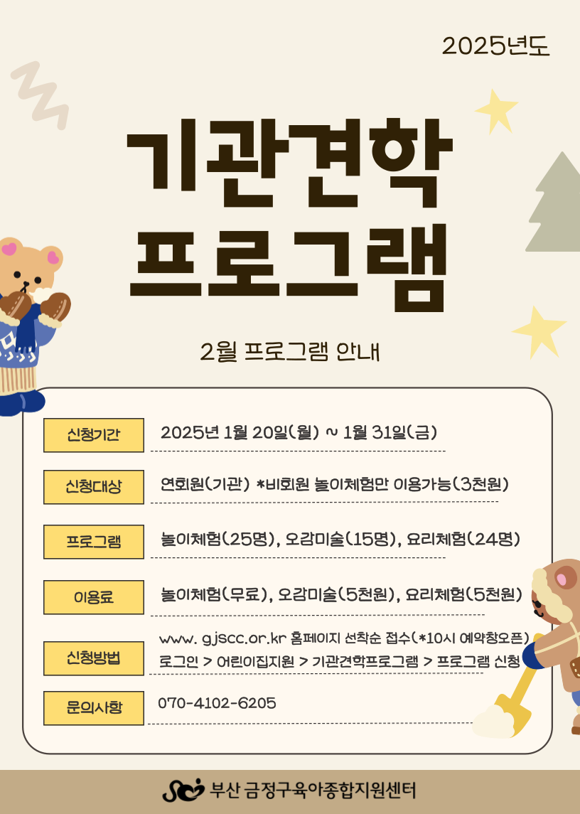 금정구육아종합지원센터 2025년 2월 기관견학프로그램 안내드립니다.