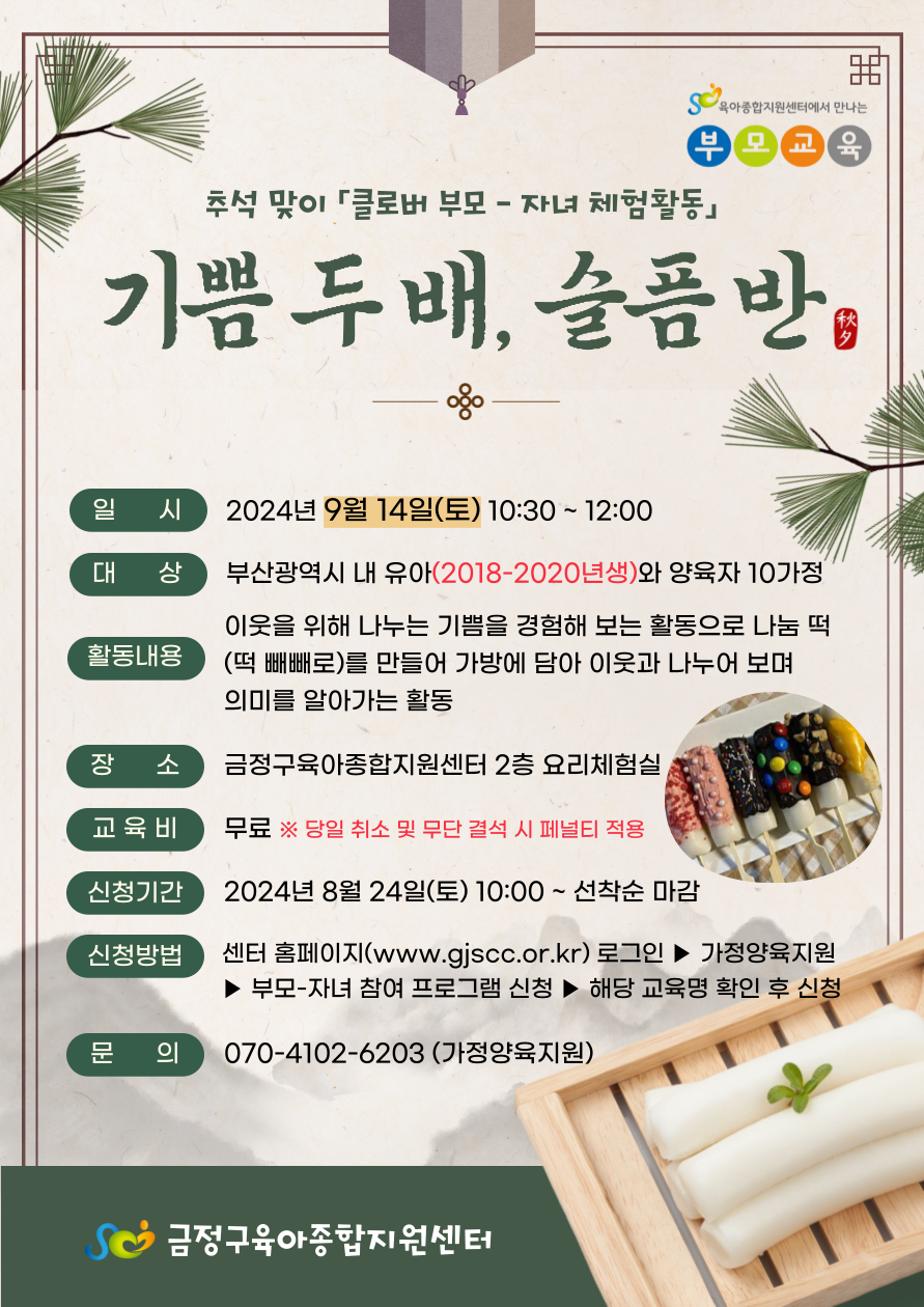 <2024년 9월 공통부모 추석맞이 '클로버 부모-자녀 체험활동' 신청 안내>