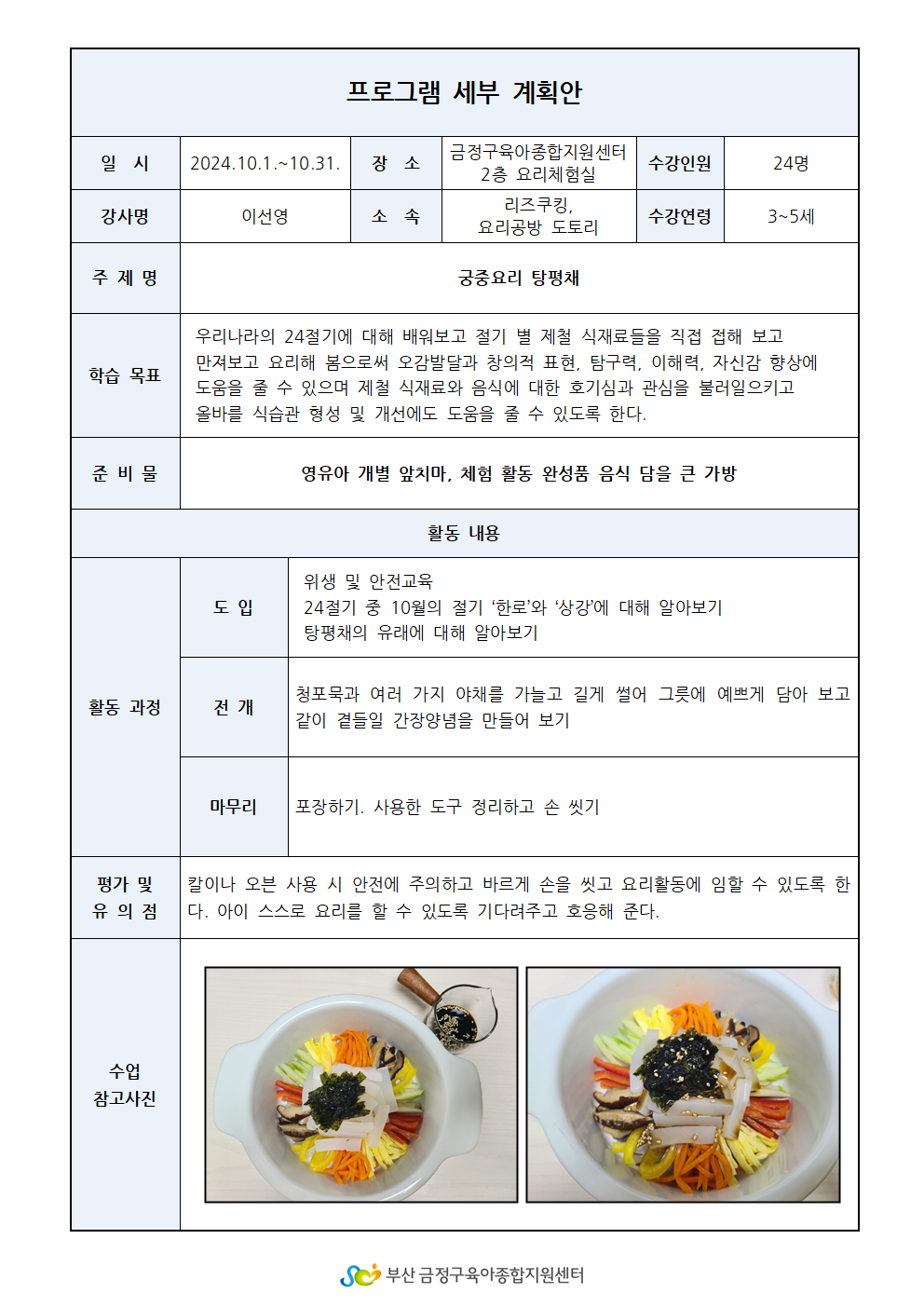 • 이용연령 및 인원 : 3~5세(18년생~20년생)/ 24명