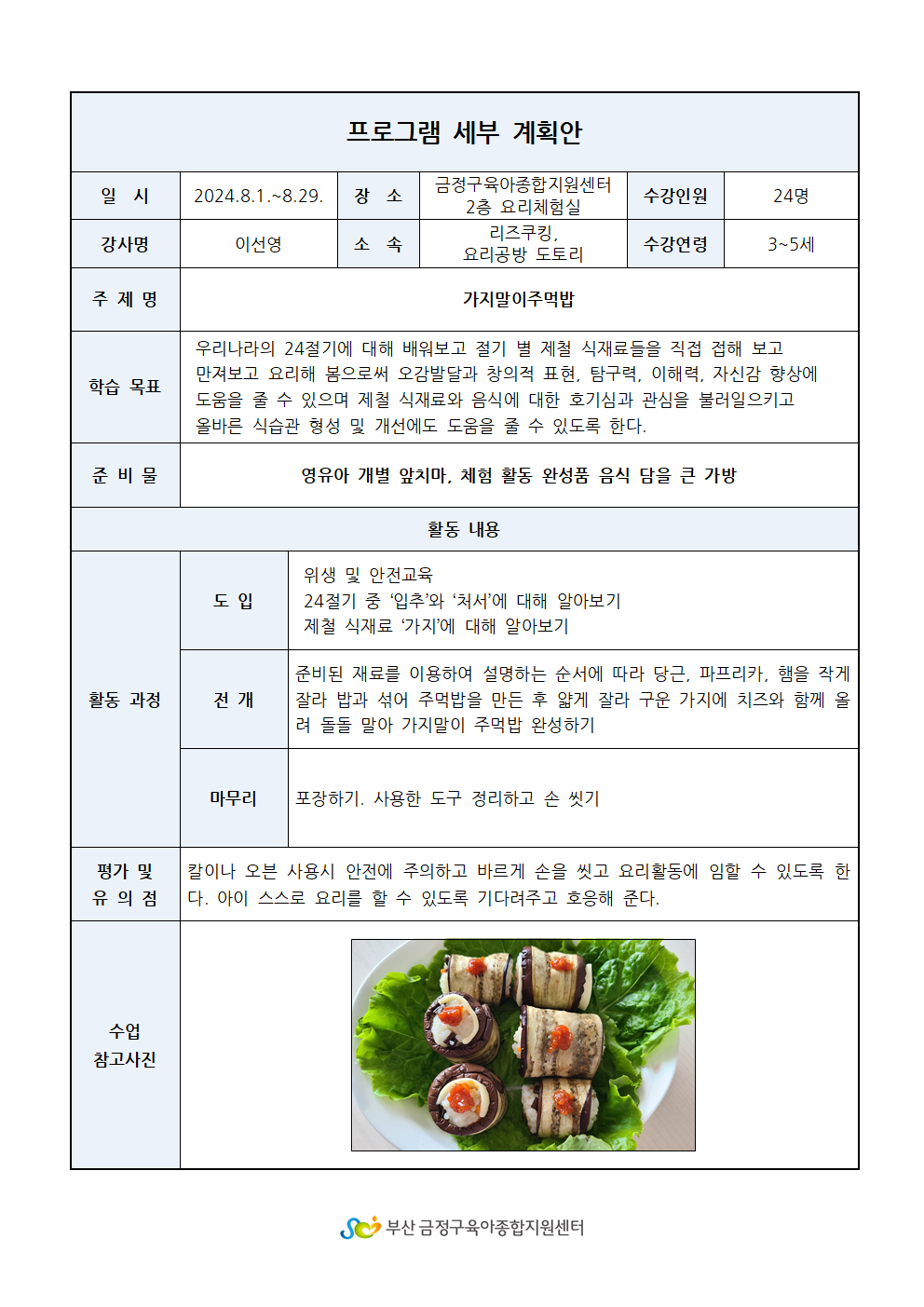 • 이용연령 및 인원 : 3~5세(18년생~20년생)/ 24명
