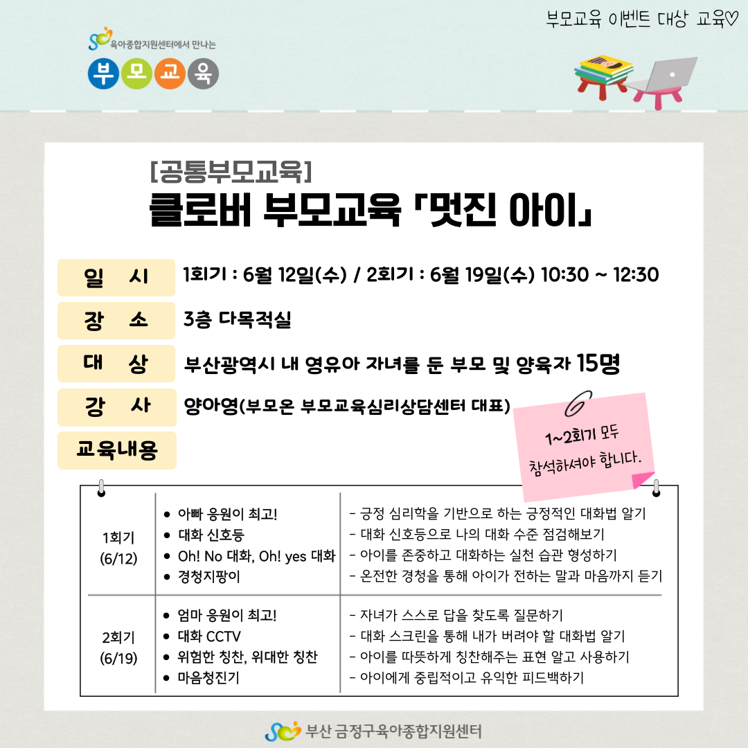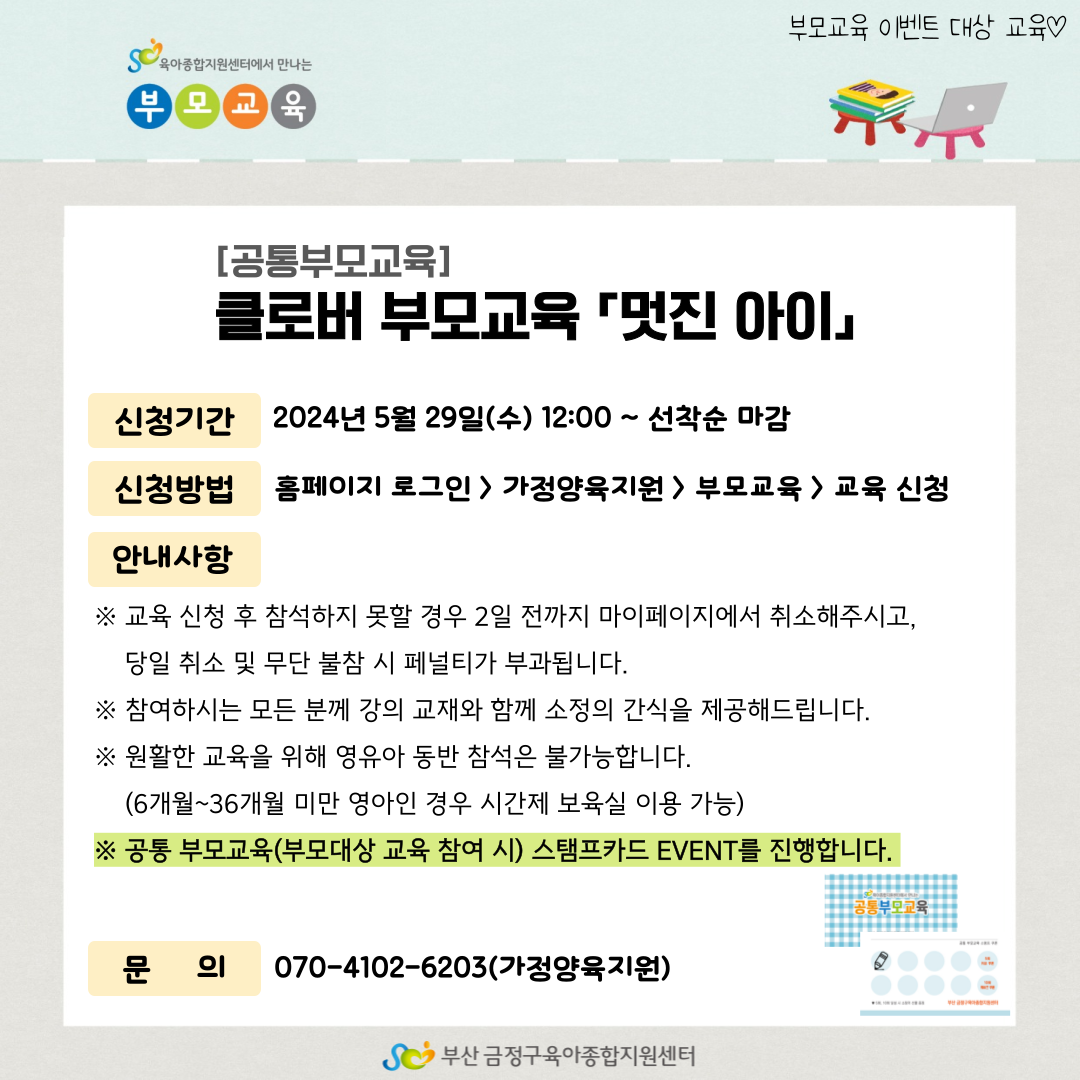 금정구 및 부산시 영유아 부모님들의 많은 신청 바랍니다.