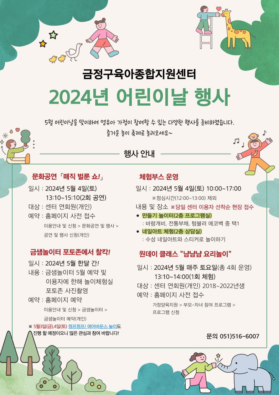 2024년 금정구육아종합지원센터 어린이날 행사 안내