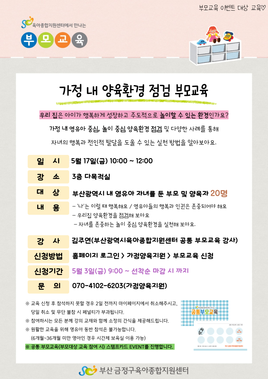 2024년 5월 공통부모 '가정 내 양육환경 점검 부모교육' 신청 안내
