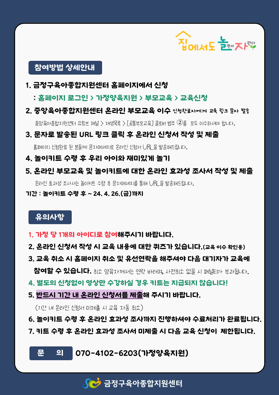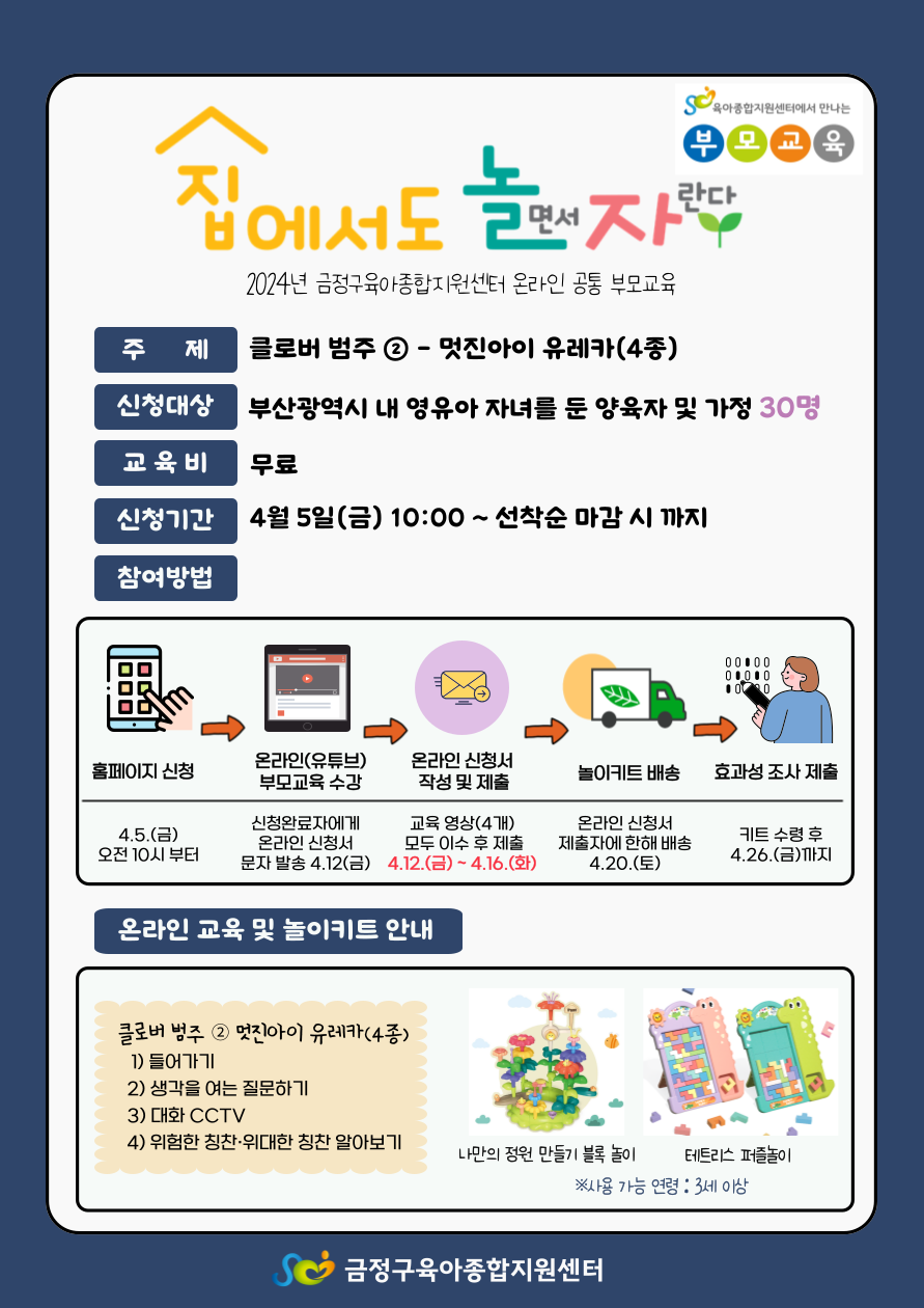 2024년 4월 공통부모 '집에서도 놀(면서) 자(란다)!' 교육 신청 안내