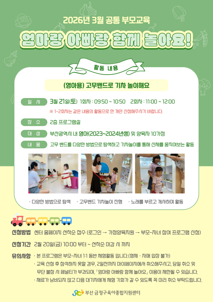 2026년 3월 공통 부모교육 「엄마랑 아빠랑 함께 놀아요」 체험활동 안내