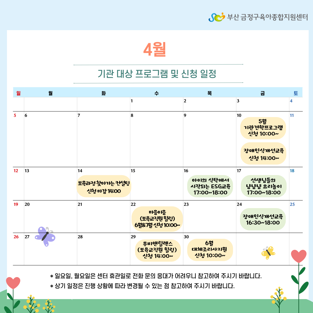 4월 기관 대상 프로그램 및 신청일정