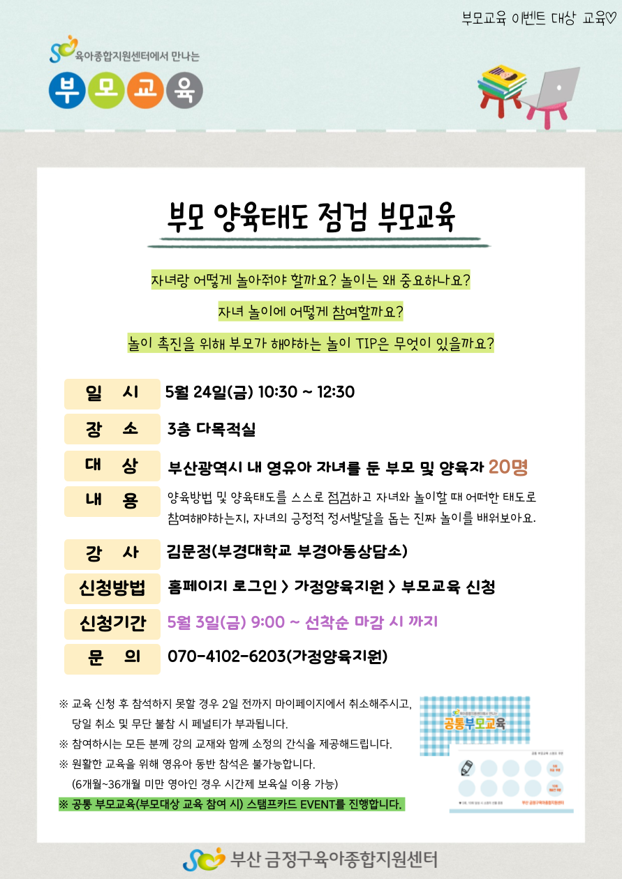 2024년 5월 공통부모 '가정 내 양육환경 점검 부모교육' 신청 안내