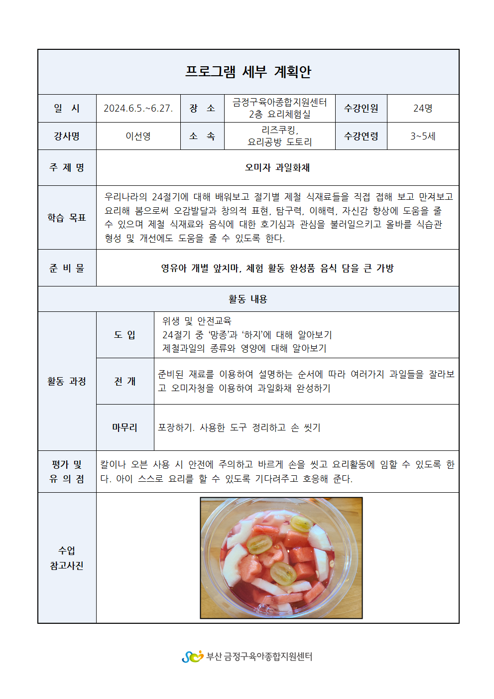 • 이용연령 및 인원 : 3~5세(18년생~20년생)/ 24명