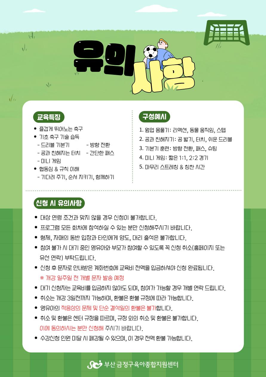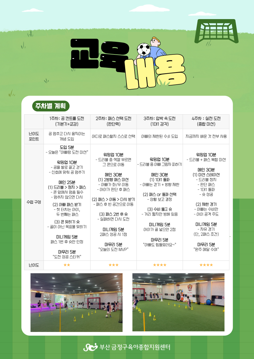 ○ 운영장소: 금정구 러닝위크 축구교실(수림로 72번길 146)