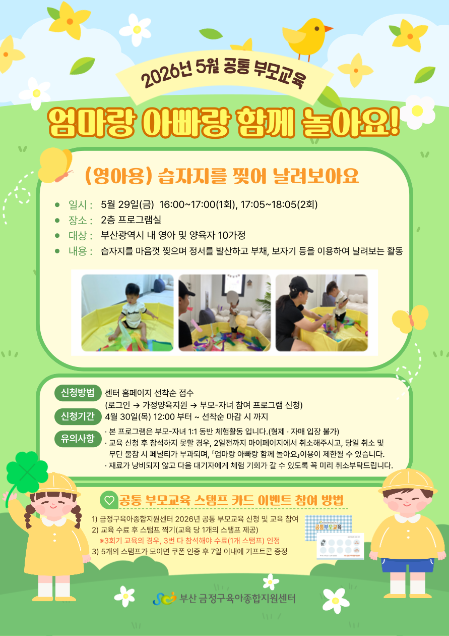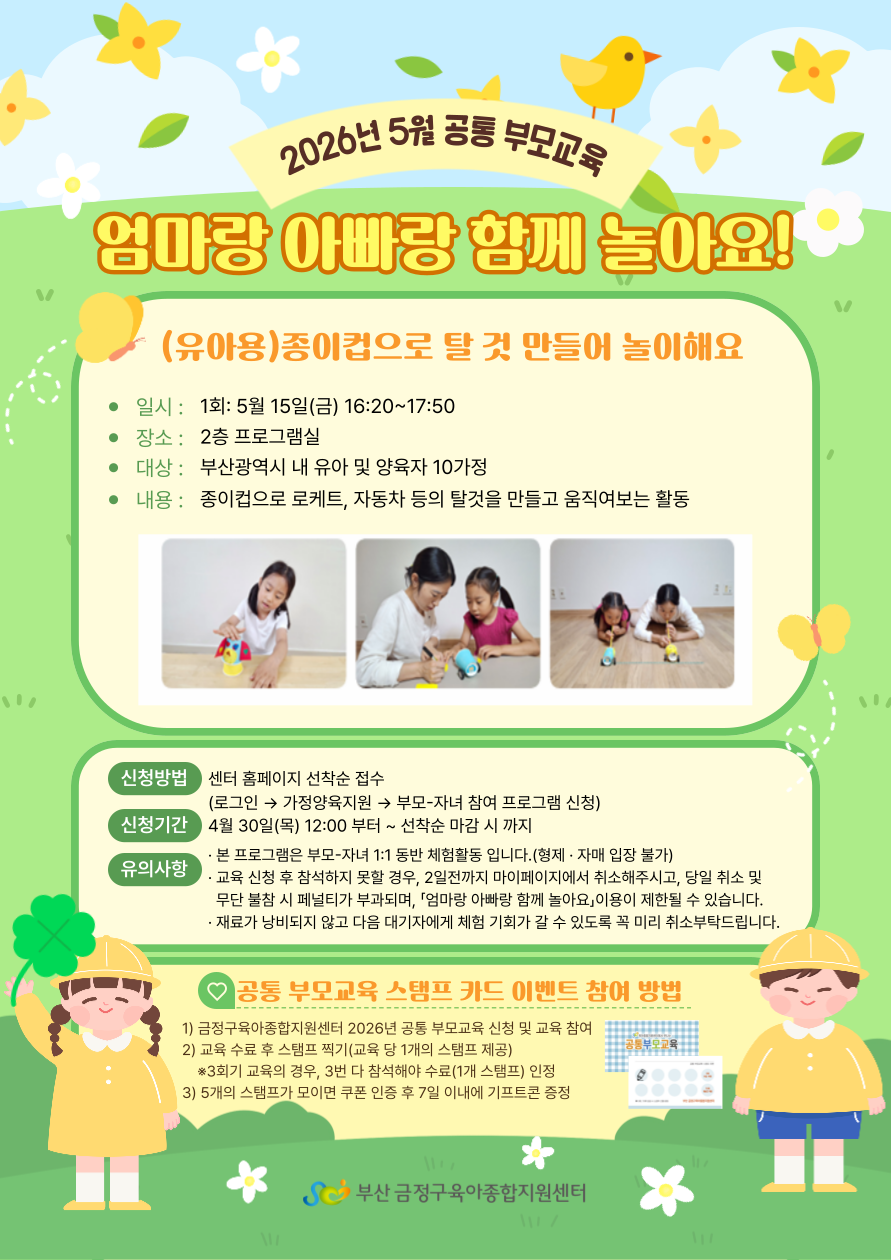 2026년 5월 공통 부모교육 「엄마랑 아빠랑 함께 놀아요」 체험활동 안내