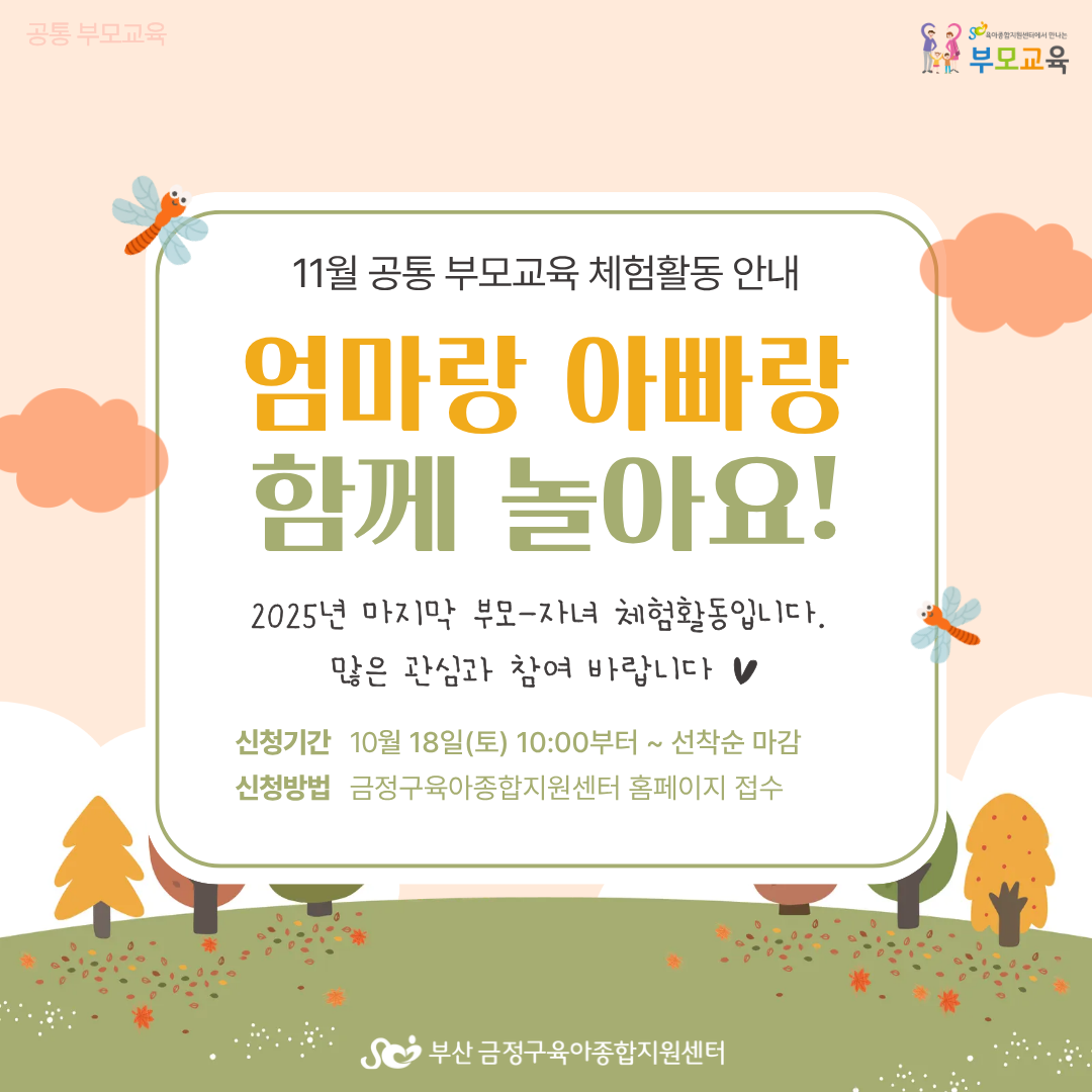 2025년 11월 공통 부모교육 「엄마랑 아빠랑 함께 놀아요」 체험활동 안내