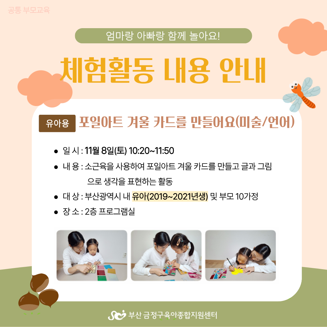 「엄마랑 아빠랑 함께 놀아요」11월 체험활동 안내