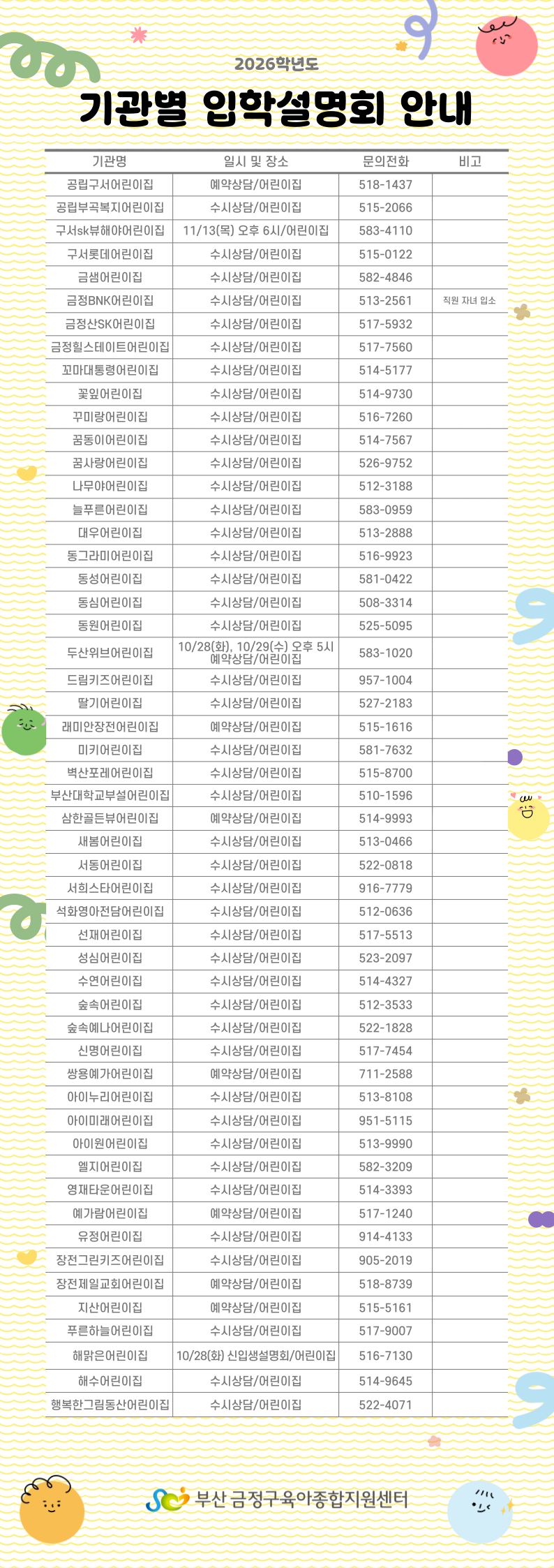 2026학년도 금정구 관내 어린이집 입학설명회 안내
