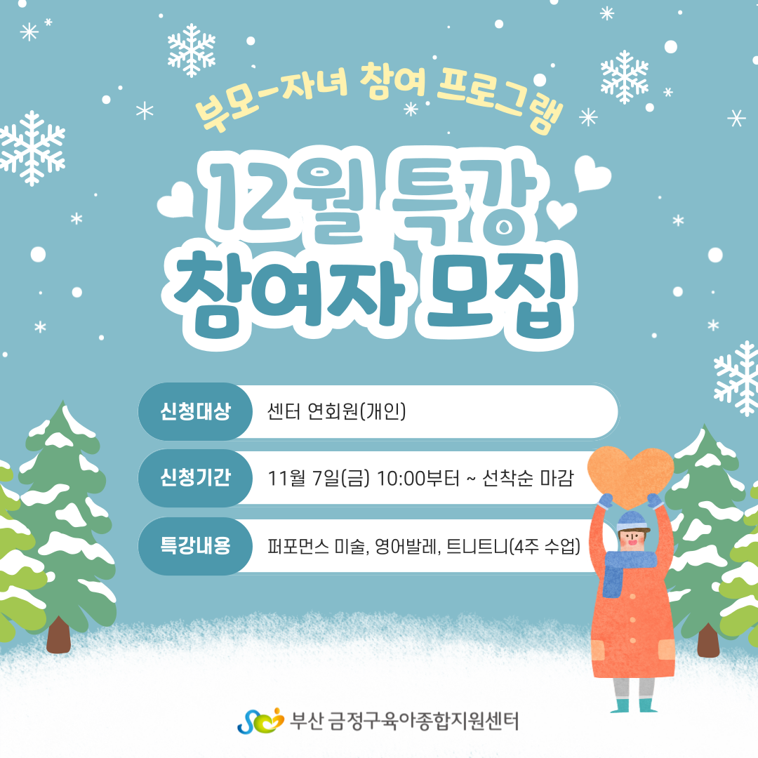 금정구육아종합지원센터 2025년 12월 부모 자녀 참여 프로그램 참여자를 모집합니다.