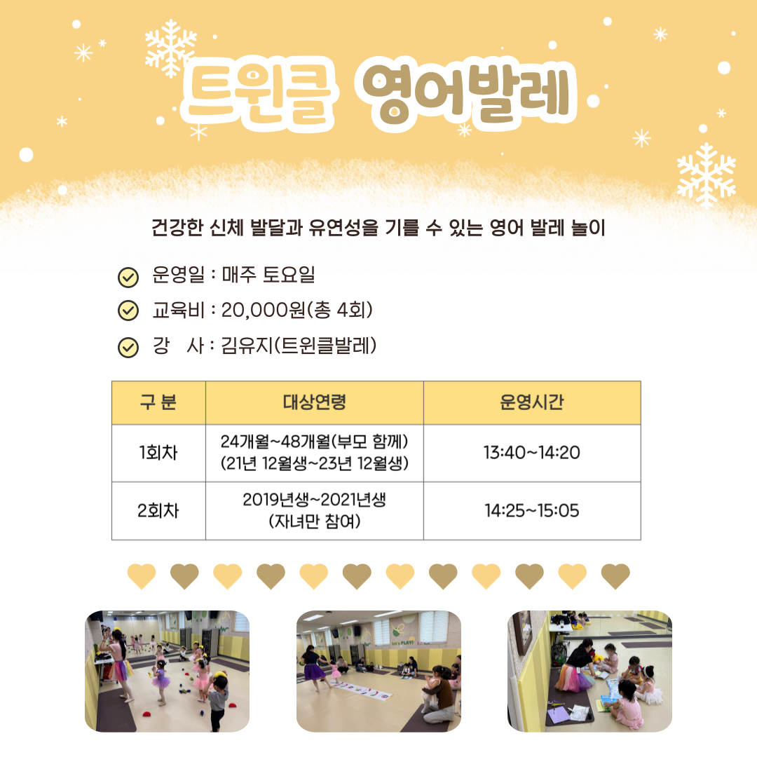 ○ 트윈클 영어발레(24개월~48개월 / 19년생~21년생) 매주 토요일