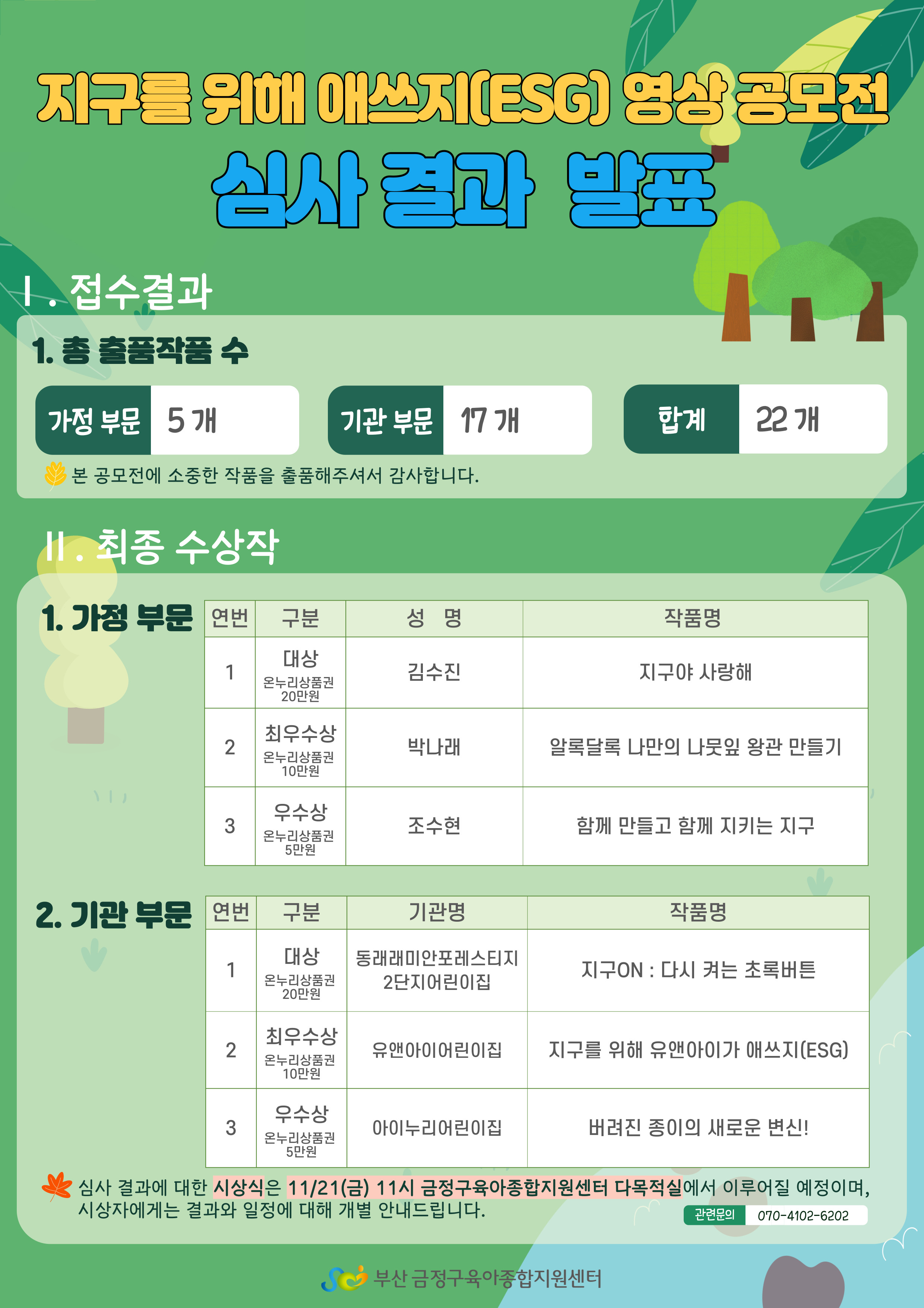 '지구를 위해 애쓰지(ESG)' 영상 공모전 심사 결과 발표