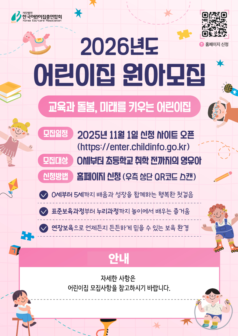2026년도 어린이집 원아모집 안내드립니다.