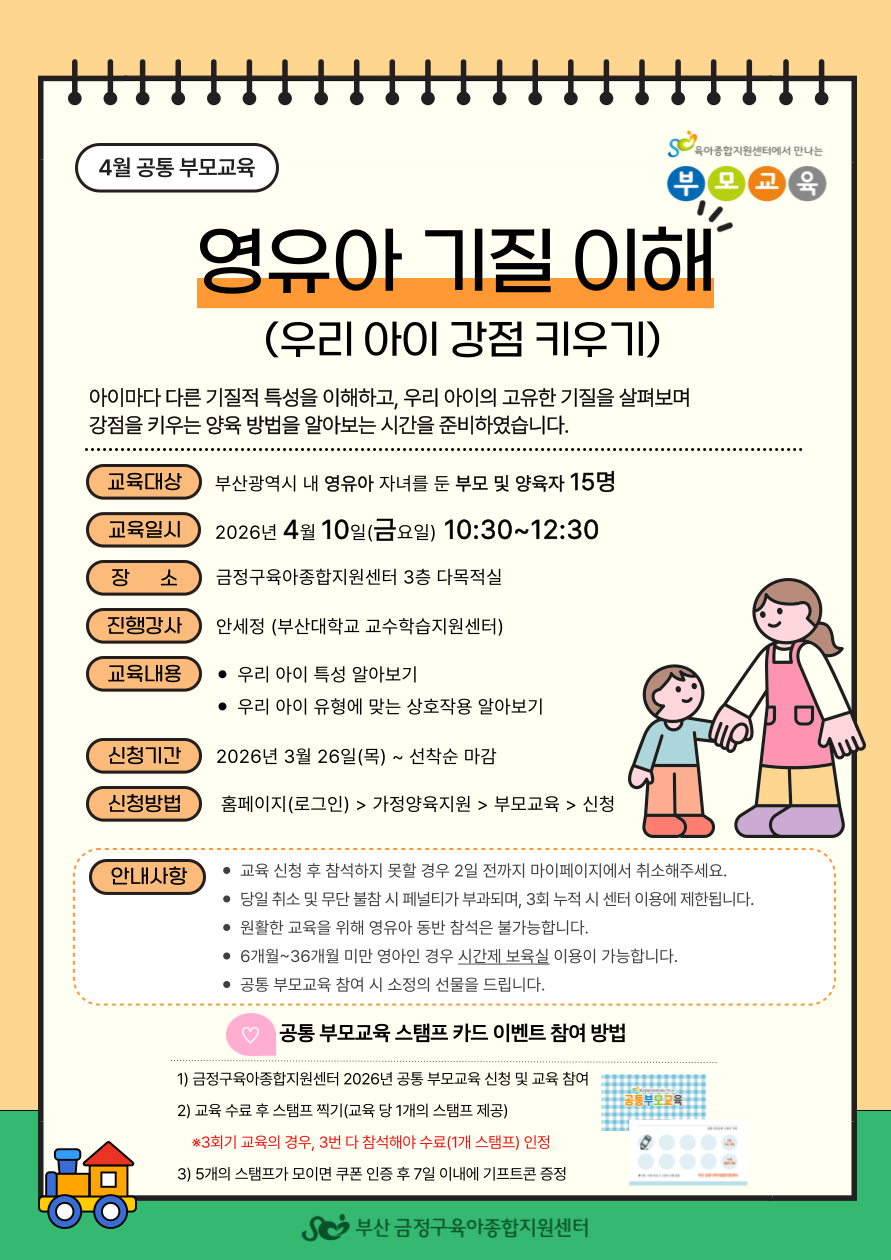 2026년 4월 공통부모교육 「영유아 기질 이해」 신청 안내