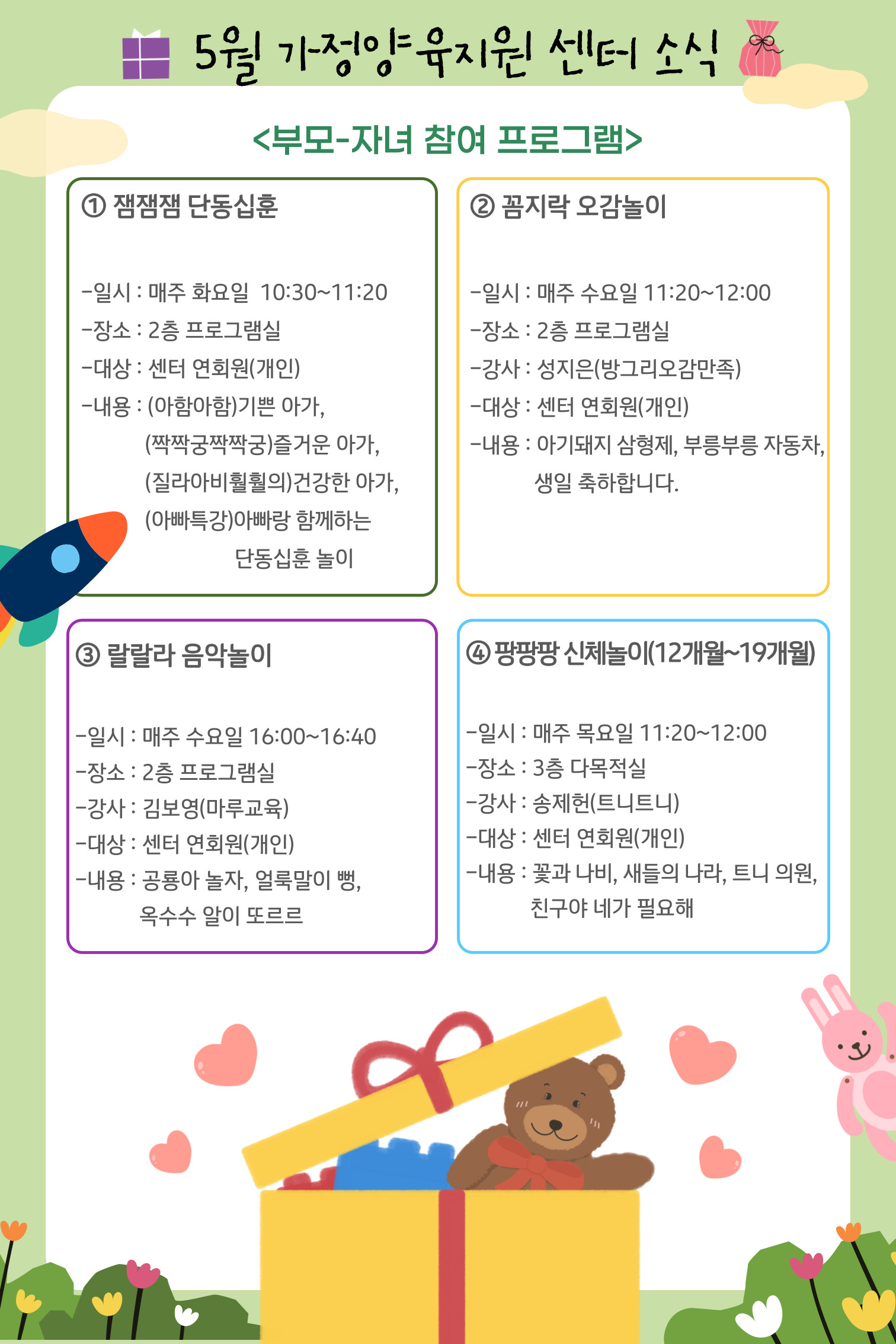 [가정양육지원사업] 5월 가정양육지원사업 안내