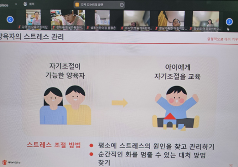 내용 : 아동과 권리의 이해, 아동권리 침해 행위와 문제 이해, 긍정적으로 아이키우기 개념을 통한 비폭력 양육의 중요성 이해