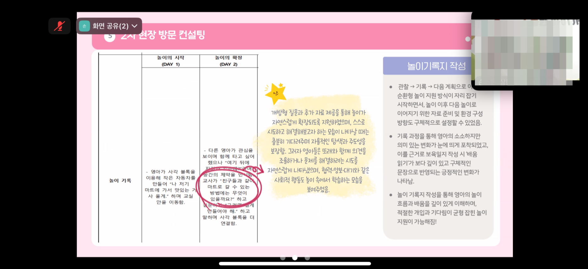내용 : 컨설팅 과정에서 발견된 각 어린이집의 실천 경험과 성과를 함께 나누며, 공동의 배움과 성장을 도모하는 시간