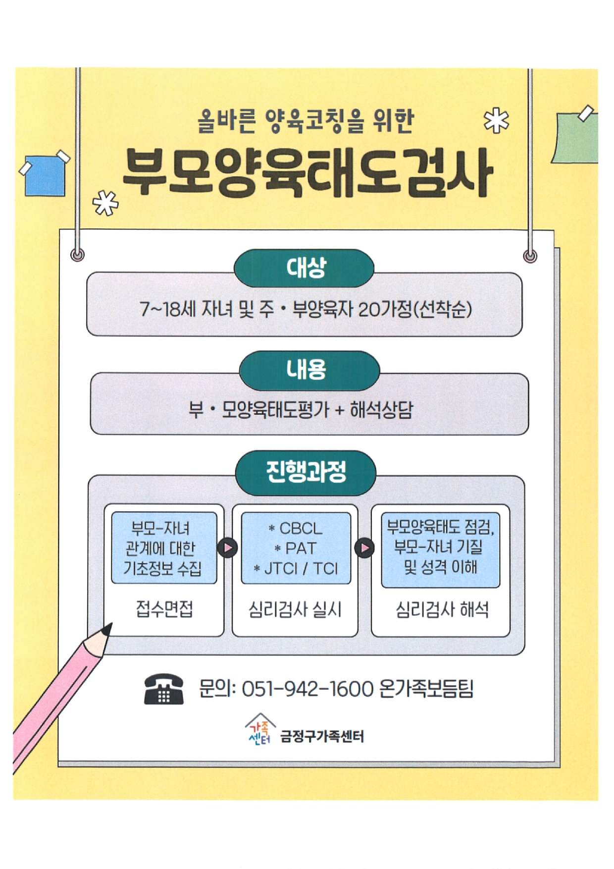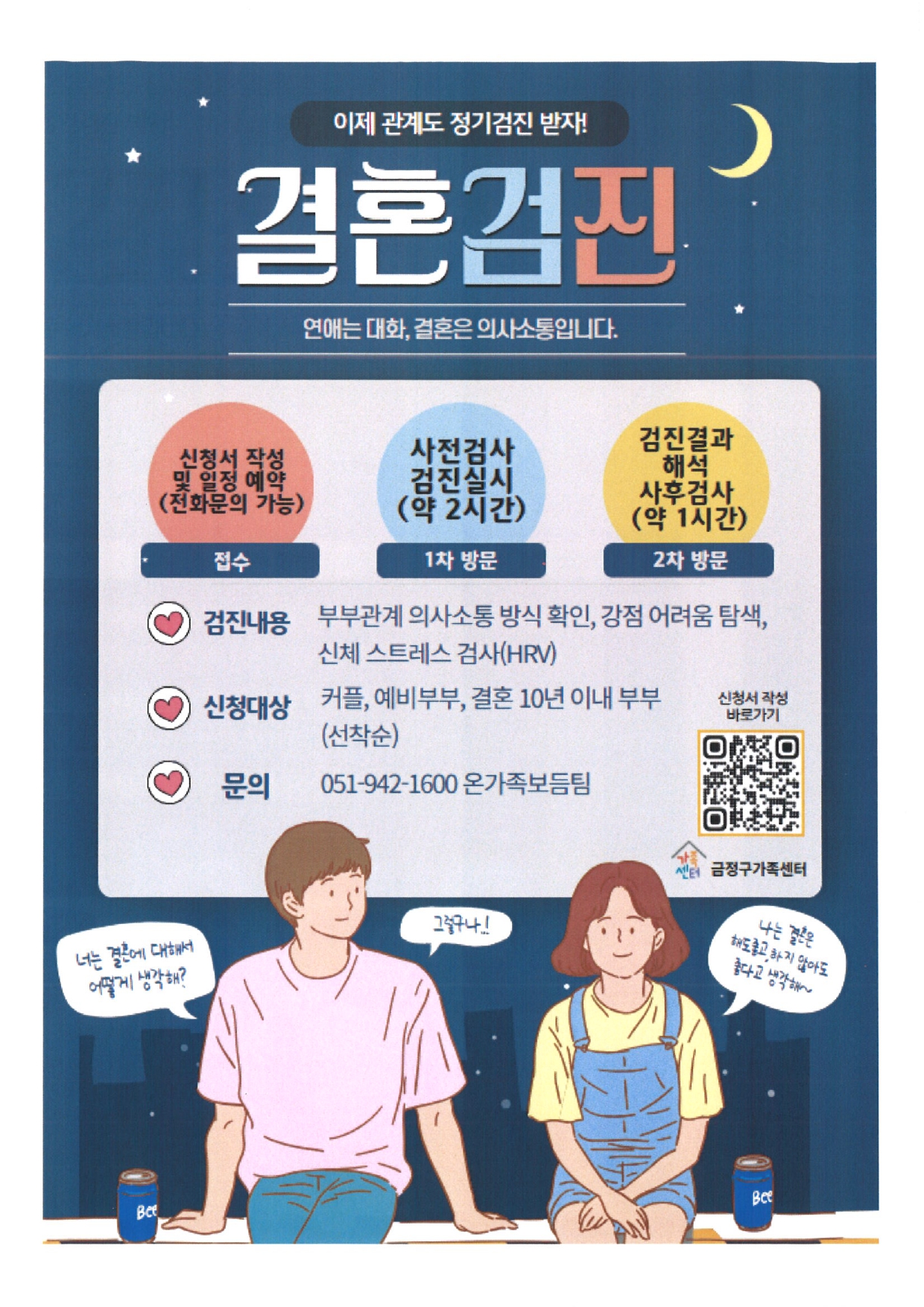 금정구가족센터에서는 지역주민들을 위한 가족상담. 결혼검진, 부모양육태도검사 등
