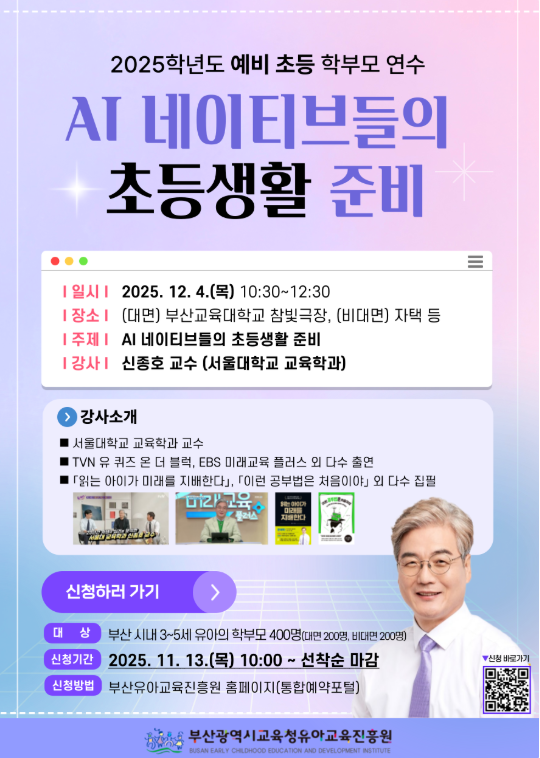 [부산유아교육진흥원] 2025학년도 예비 초등 학부모 연수 안내