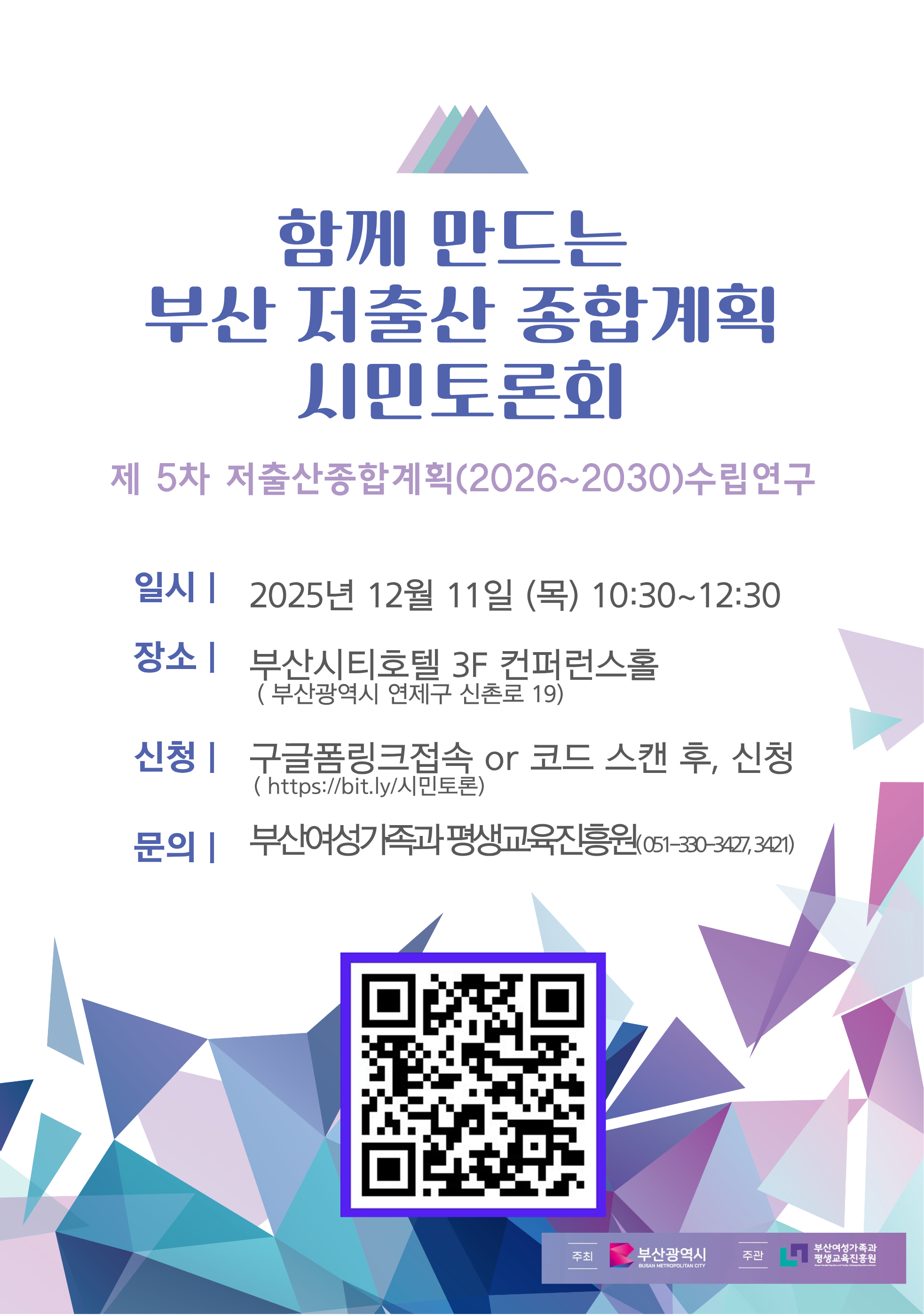 [부산여성가족과평생교육진흥원]함께 만드는 부산 저출산 종합계획 시민토론회 참여 안내