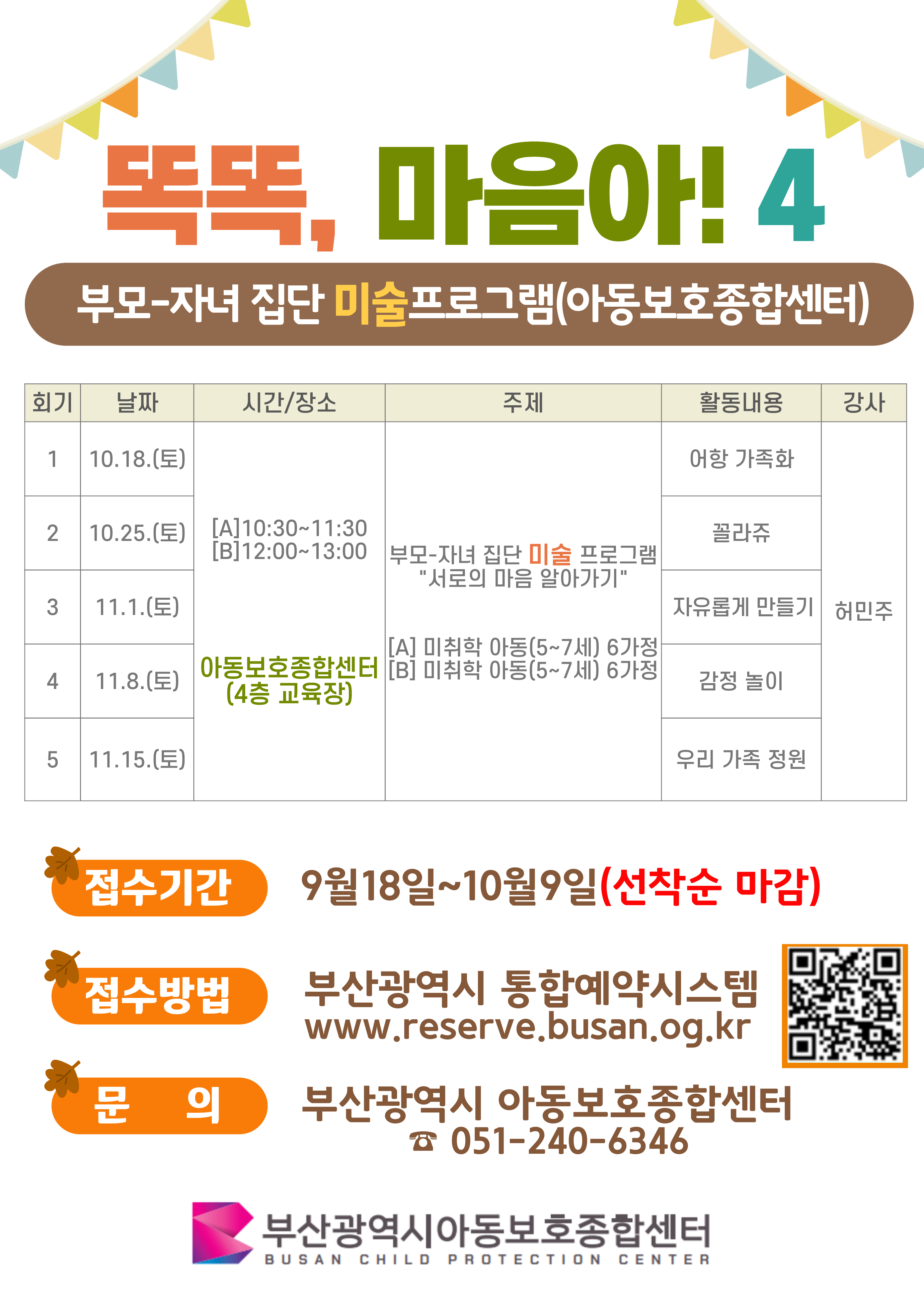 [부산광역시아동보호종합센터] 집단 프로그램 "똑똑, 마음아!" 안내