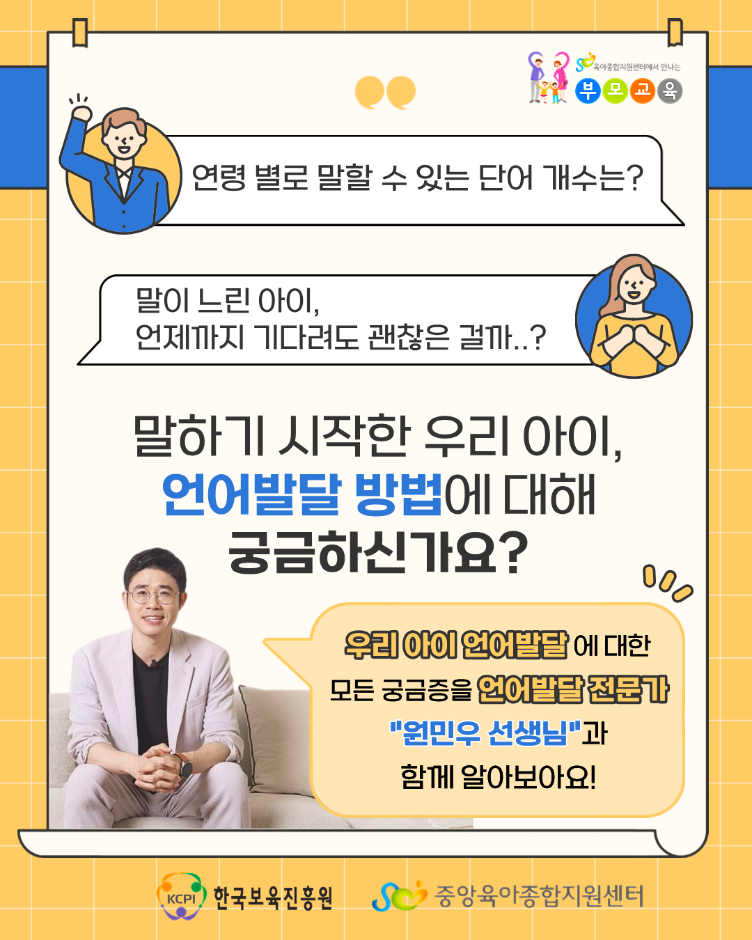 영유아 언어 발달에 대한 걱정과 고민 해결을 위해 "언어발달 전문가" 원민우 교수님과 함께 우리 아이 언어발달에 대한 모든 것을 알려드립니다!